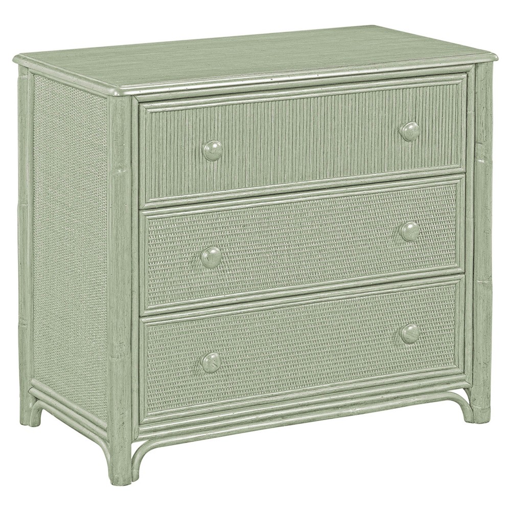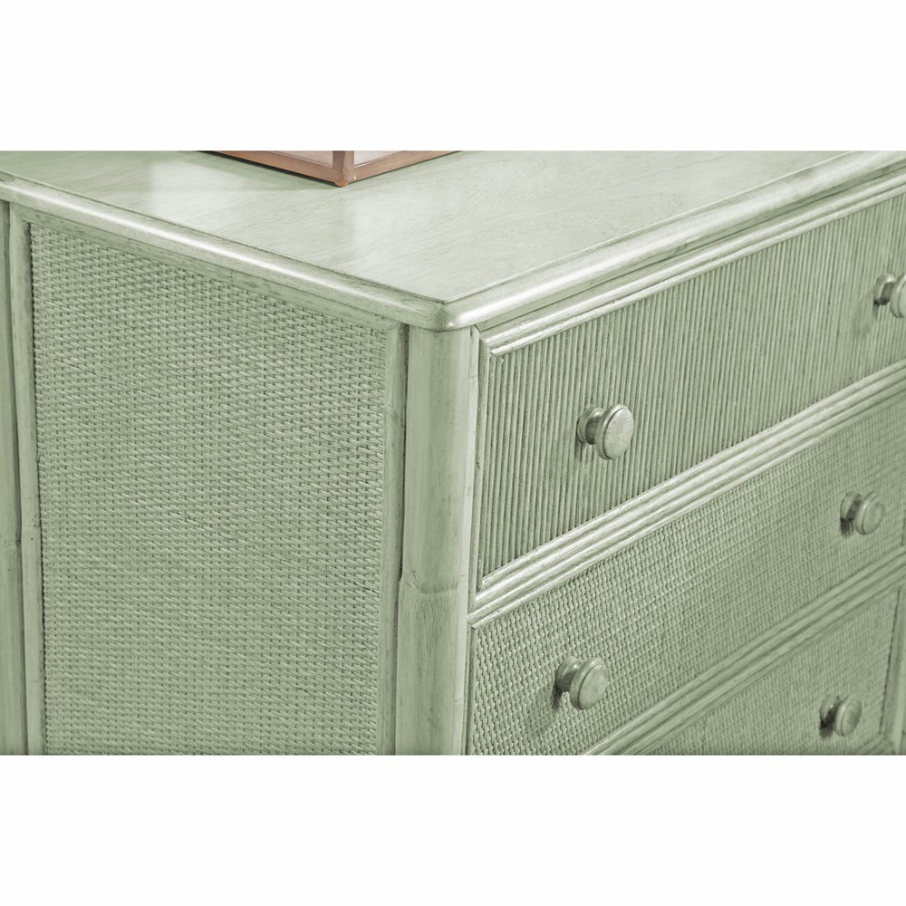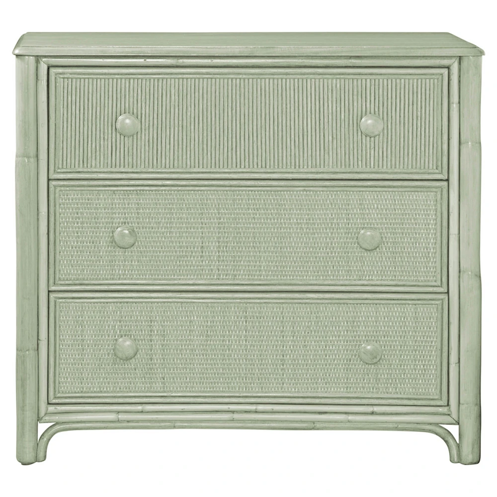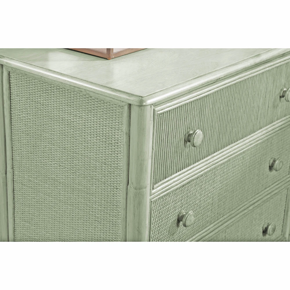 Elliana Coastal Beach Green Woven Rattan Bachelor Chest