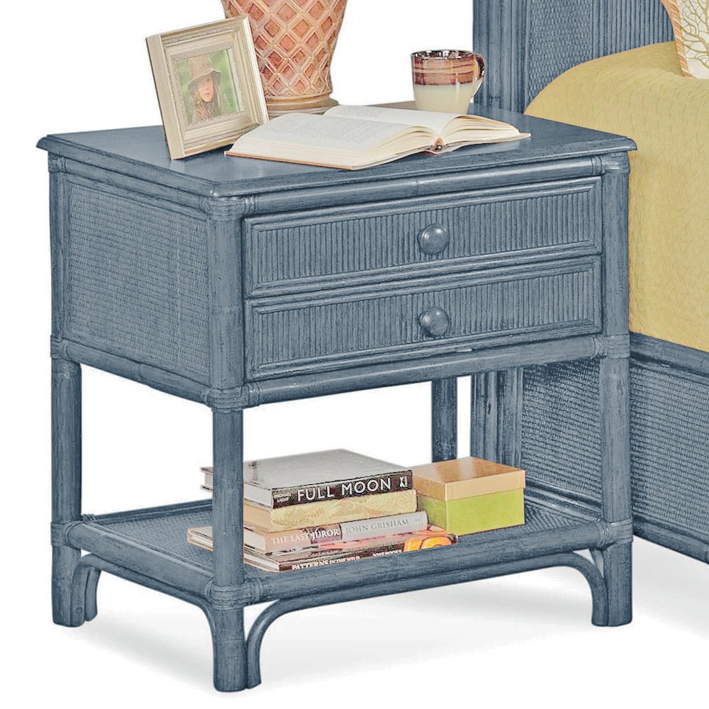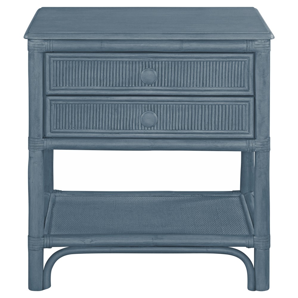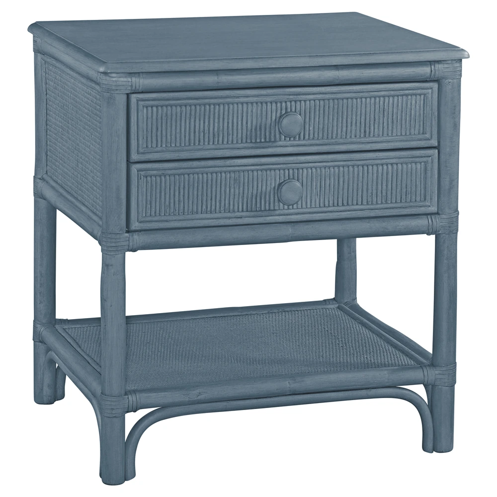 • Kalea Coastal Beach Blue Woven Rattan Nightstand|Kathy Kuo Home