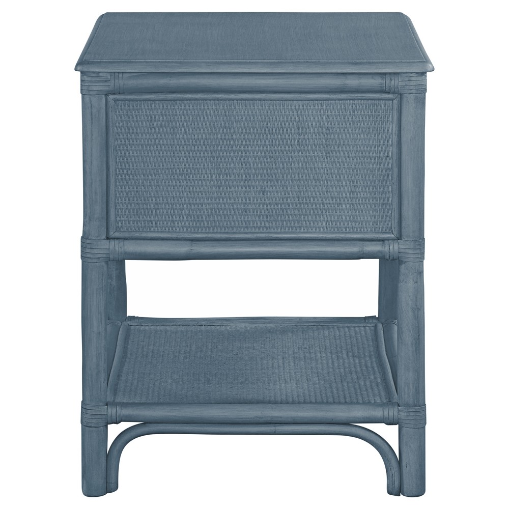Kalea Coastal Beach Blue Woven Rattan Nightstand