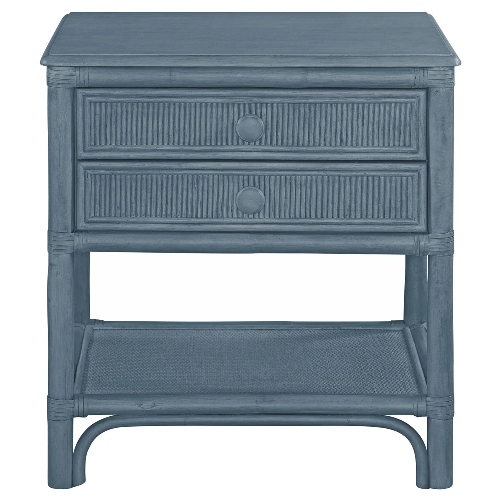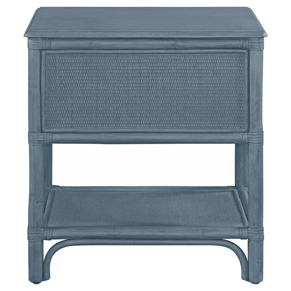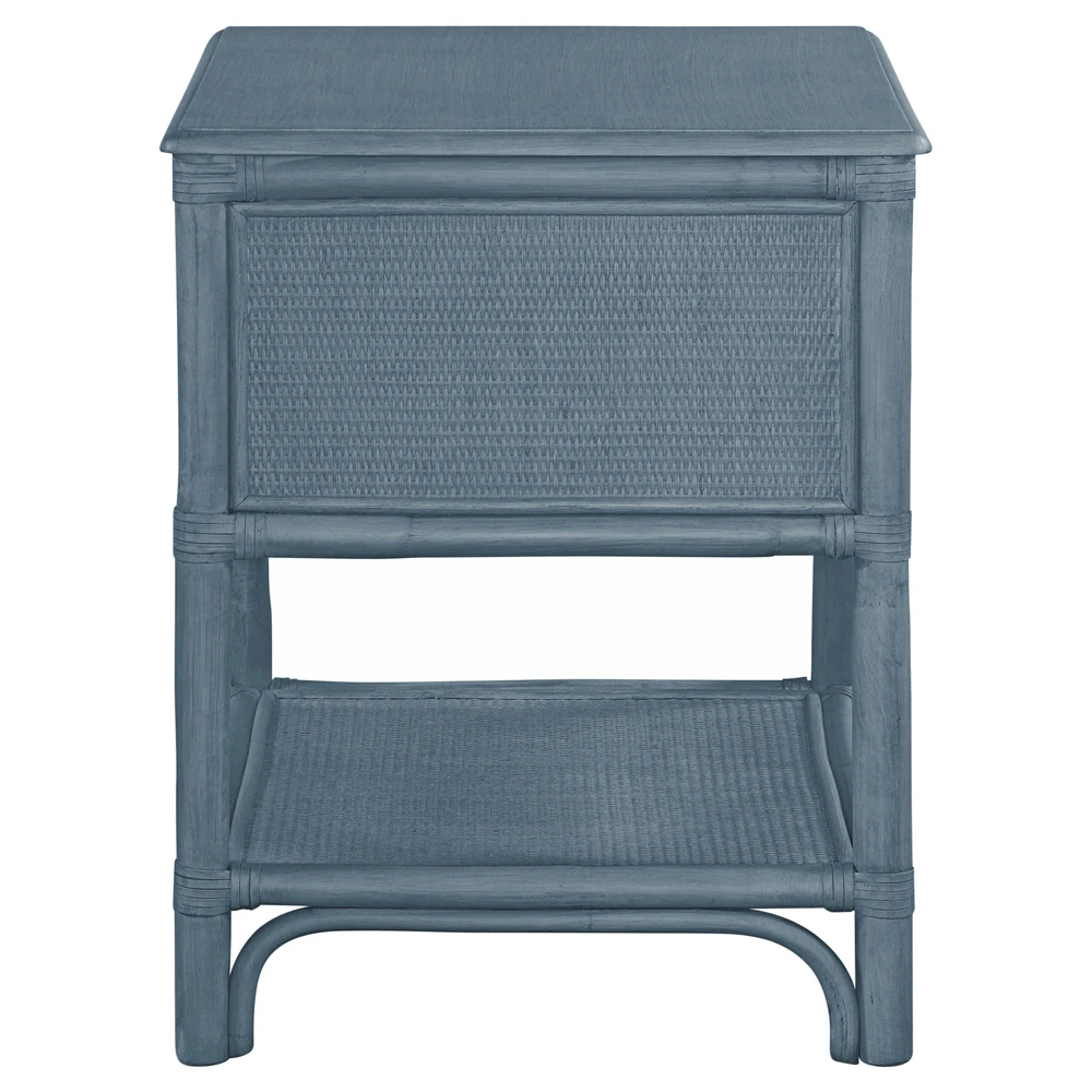 • Elliana Coastal Beach Blue Woven Rattan Nightstand|Kathy Kuo Home