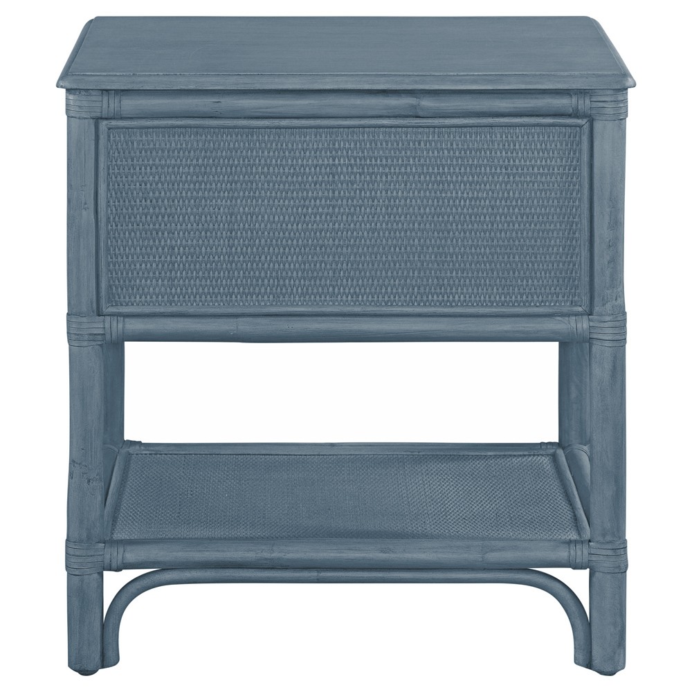 Elliana Coastal Beach Blue Woven Rattan Nightstand