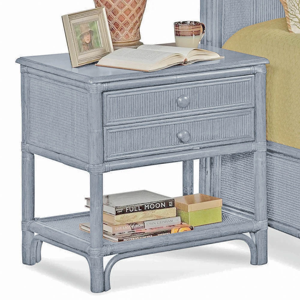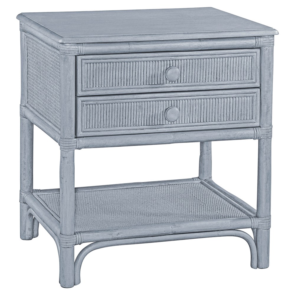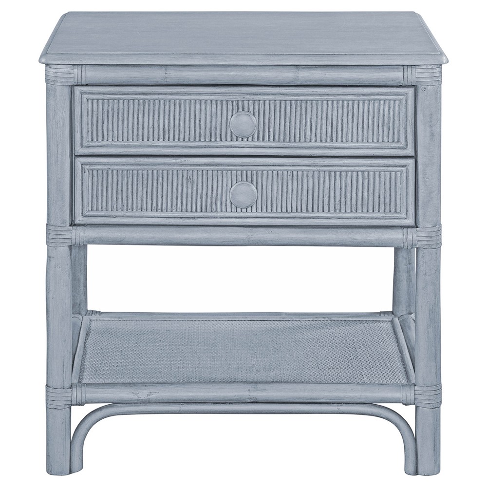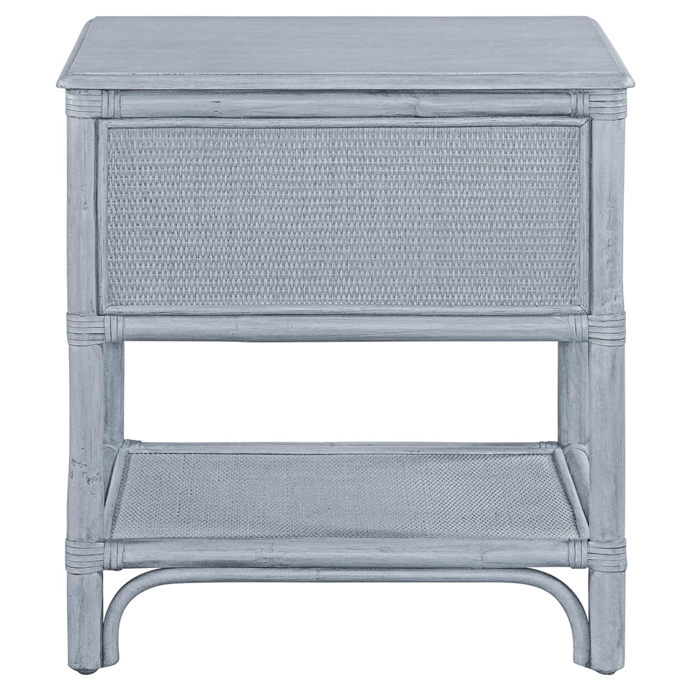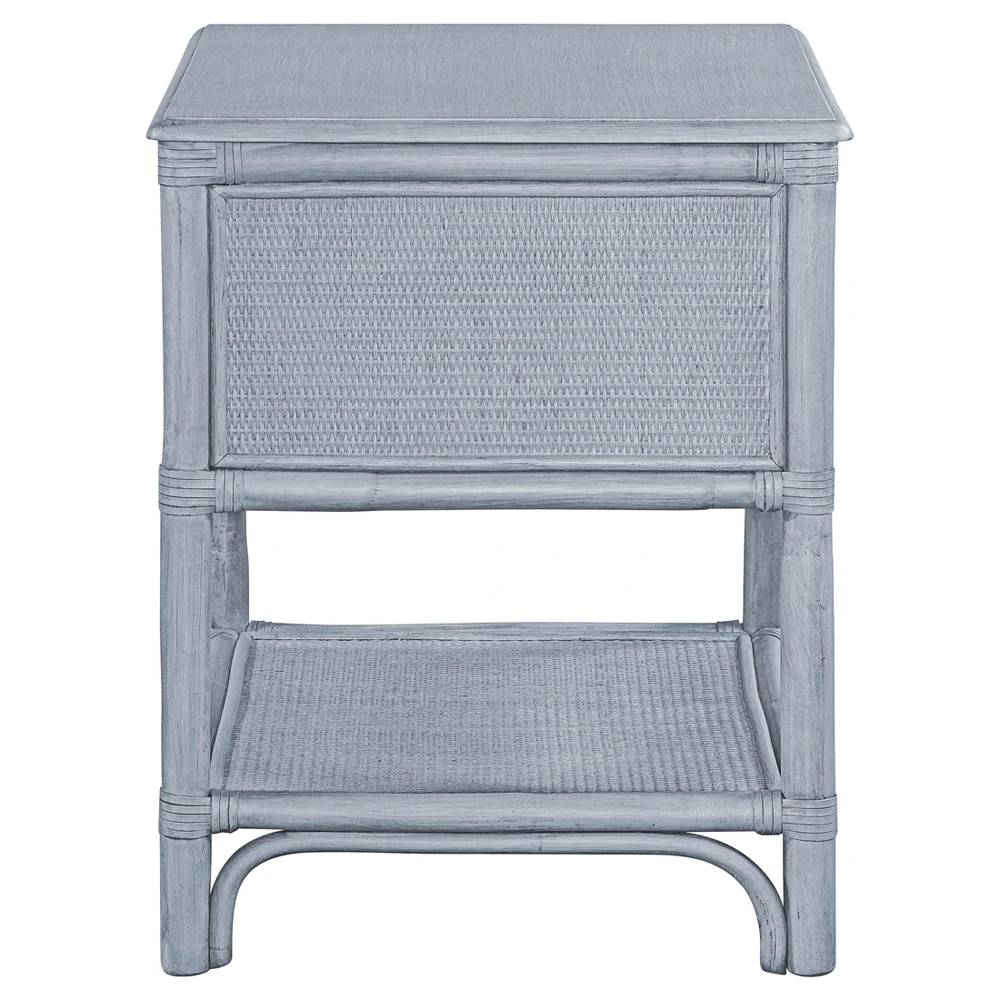 Elliana Coastal Beach Blue Woven Rattan Nightstand