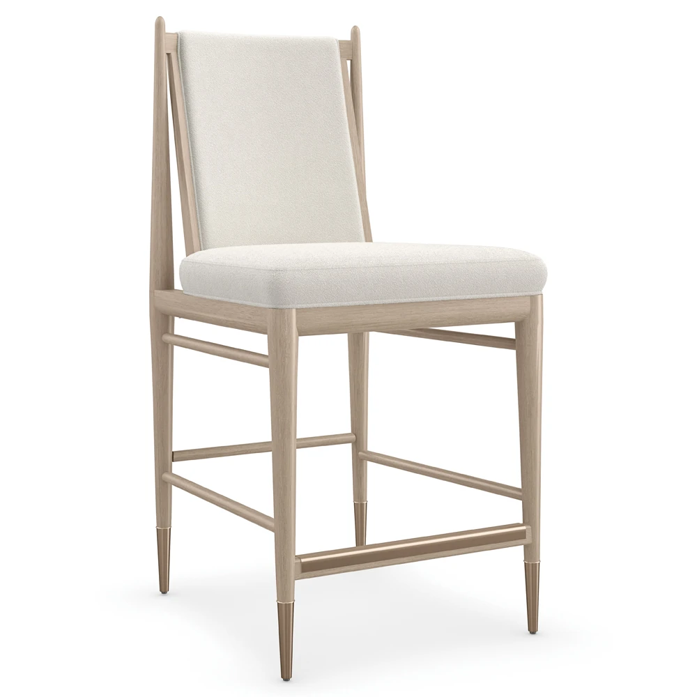 Abrielle Modern Classic White Boucle Oak Wood Counter Stool