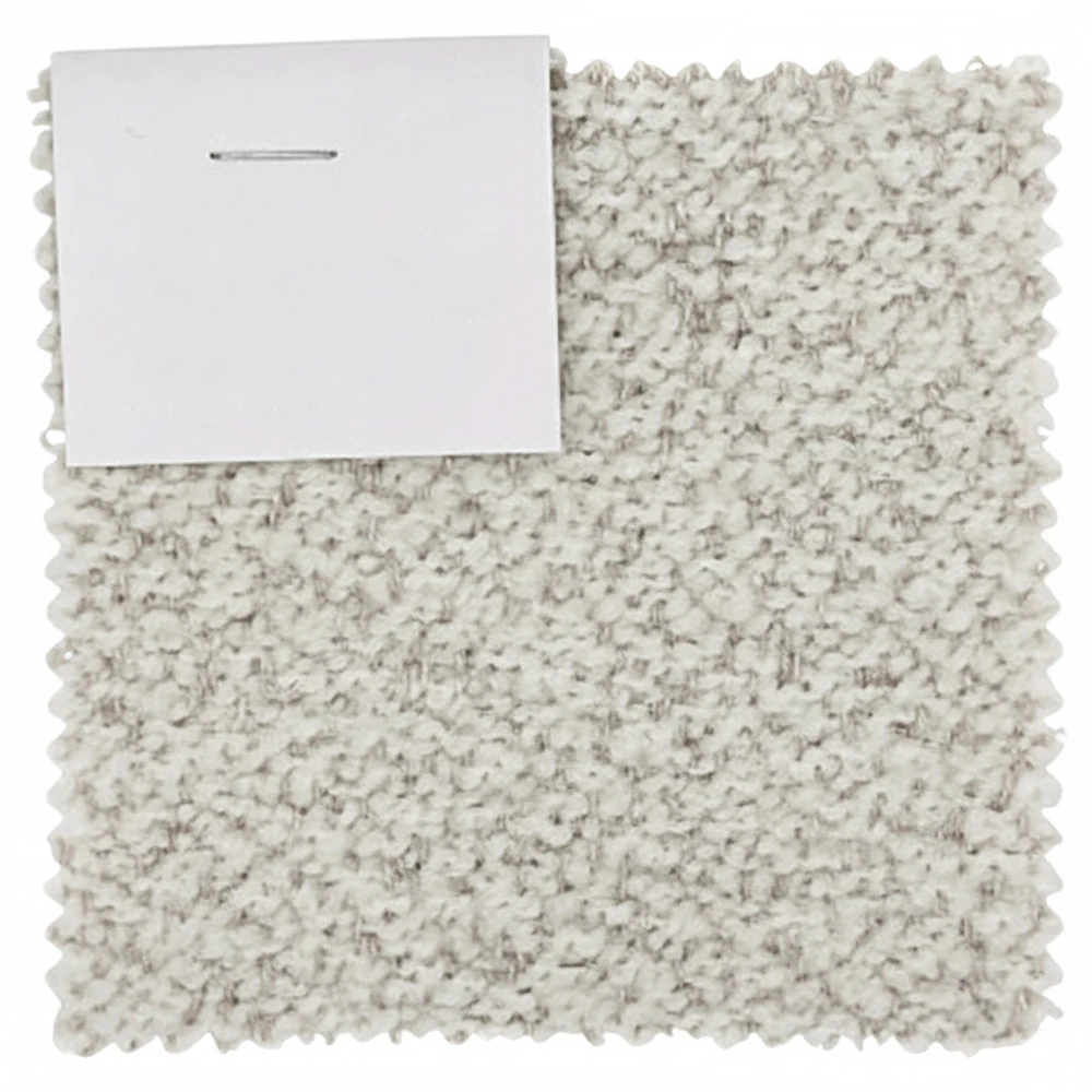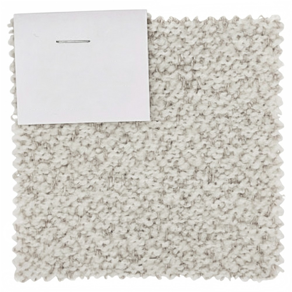 • Upholstered in white boucle fabric; Fabric content: 47% polyester, 18% viscose, 30% acrylic, 5% linen