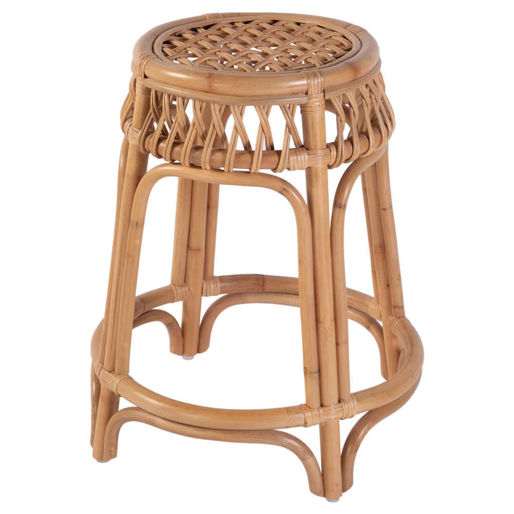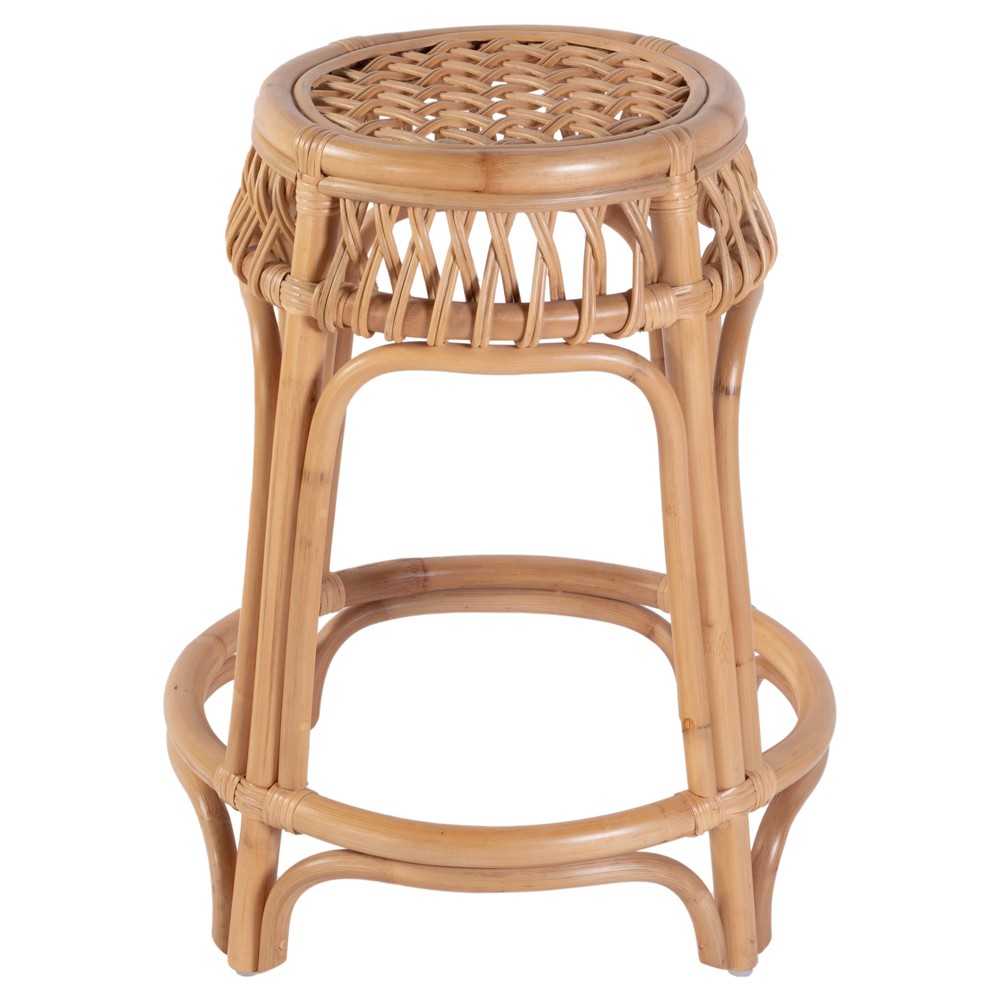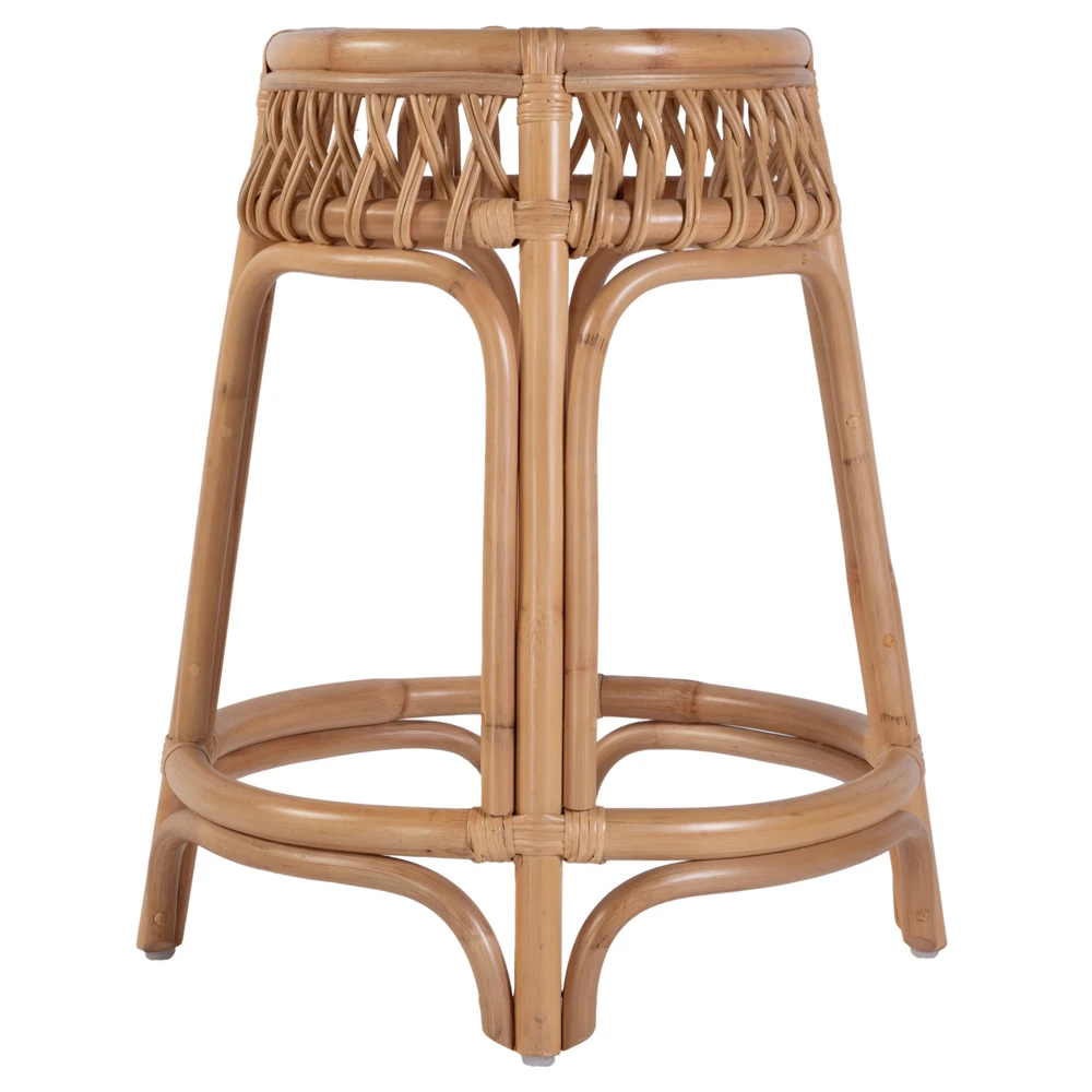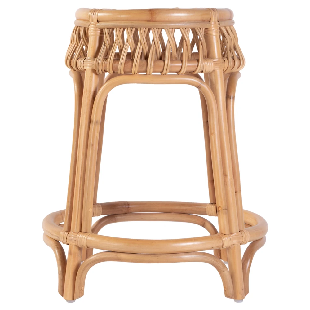 Frances Coastal Beach Natural Woven Rattan Counter Stool