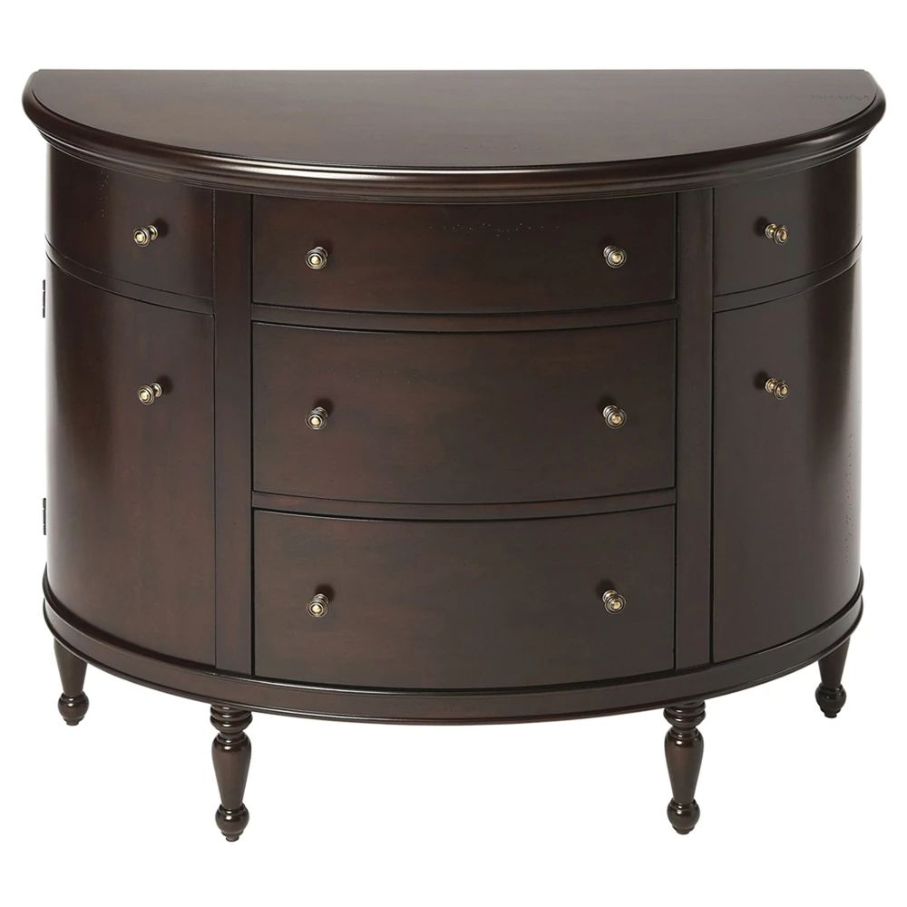 Aya Updated Traditional Dark Brown Mahogany Wood Demilune Console Table