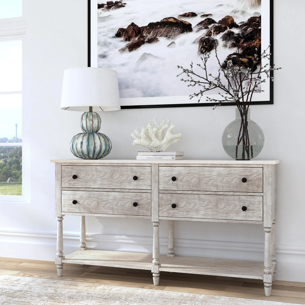 Jillian Coastal Beach Whitewash Elm Wood Sideboard