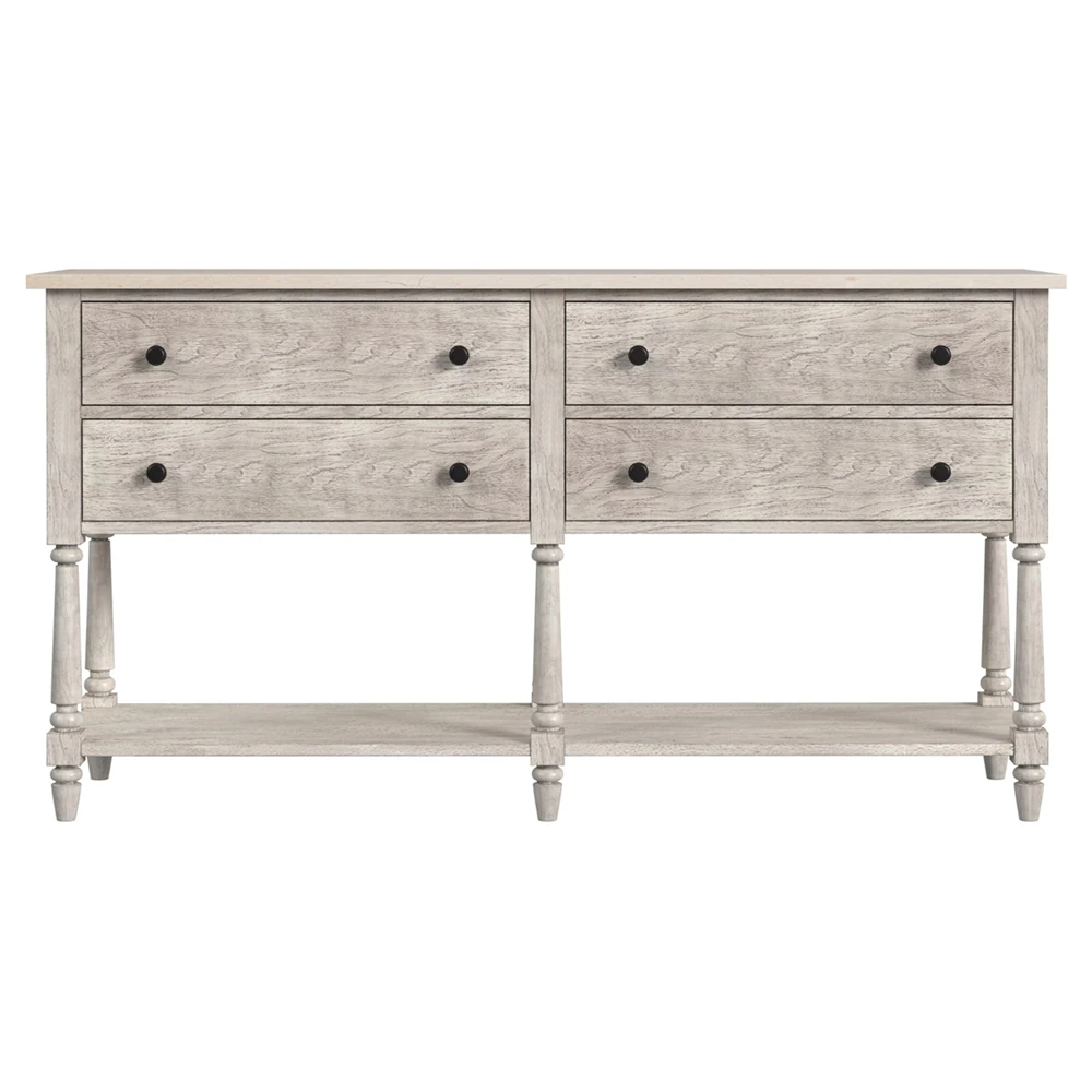 • Calypso Updated Traditional Whitewash Oak Bobbin Sideboard|Kathy Kuo Home