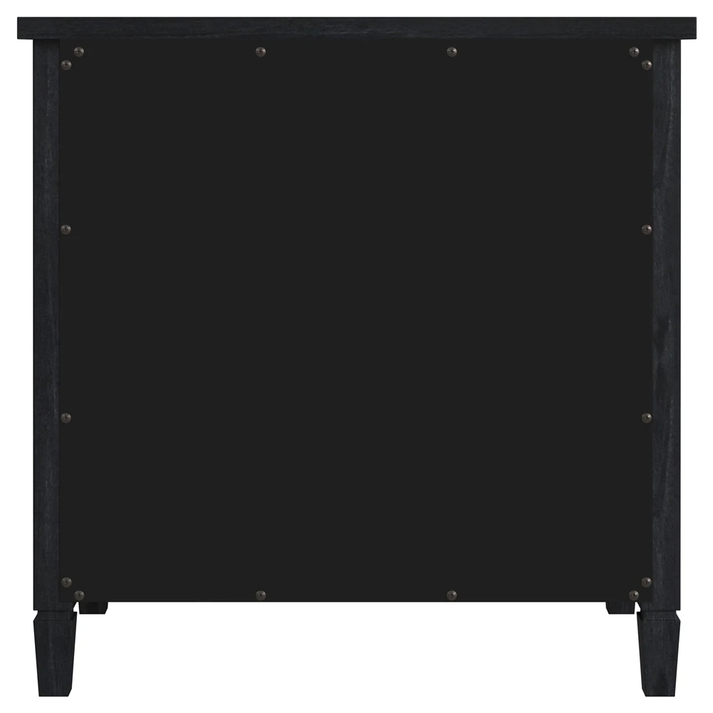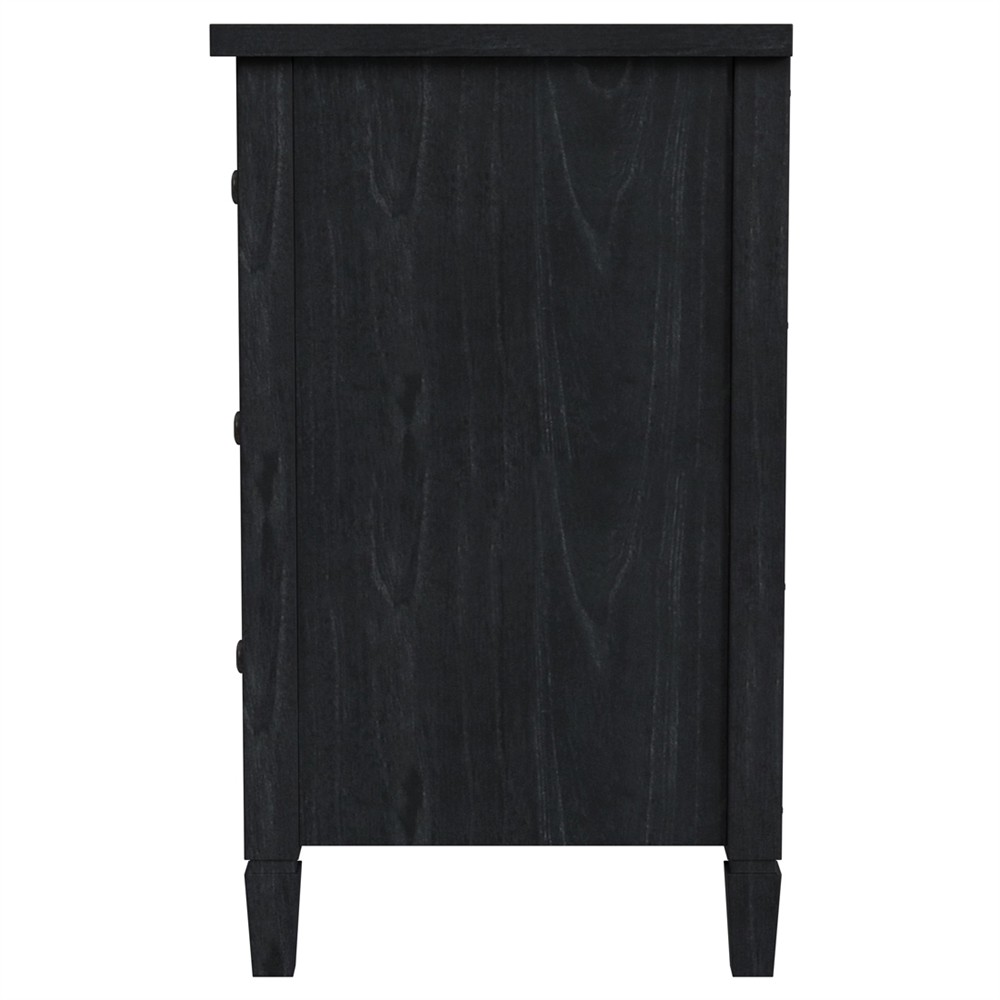 Theodore Industrial Loft Black Wood Leather Pull 5 Drawer Dresser