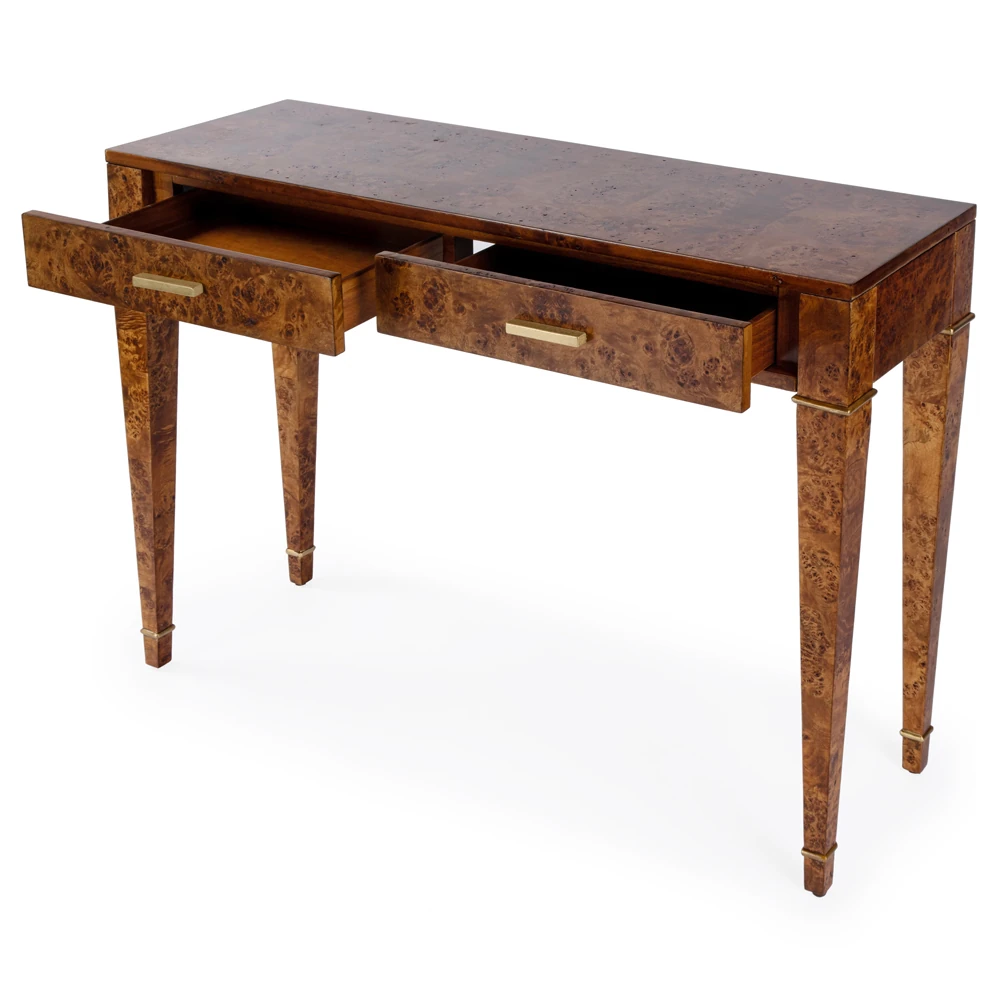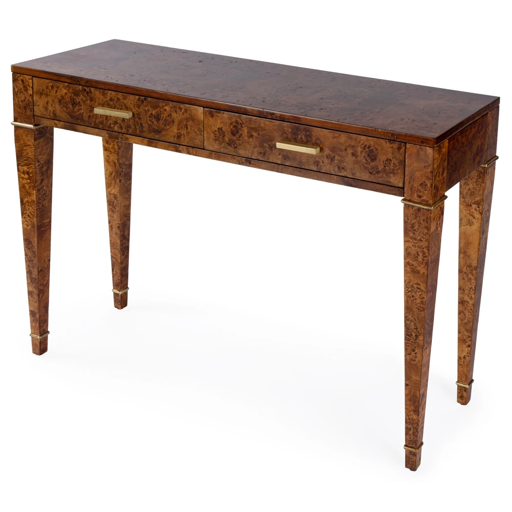 • Renz Modern Classic Dark Brown Burl Console Table|Kathy Kuo Home