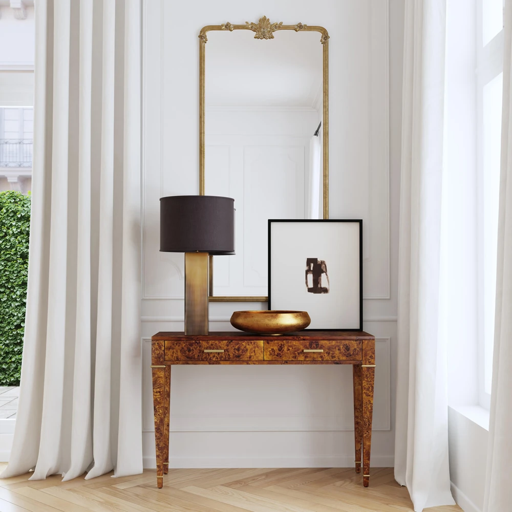 • Calag French Country Brown Burl Wood Console Table|Kathy Kuo Home