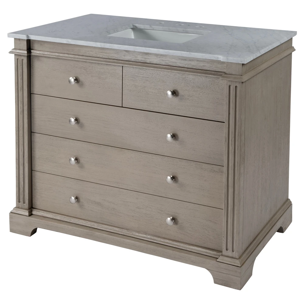 Eileen Updated Traditional White Marble Grey Wood Vanity Sink - 42"