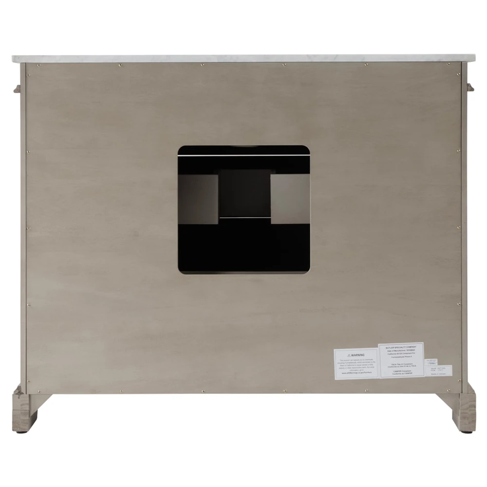 • Worlds Away Cutler French Country White Marble Cane Dark Brown Oak Vanity Sink - 37"|Kathy Kuo Home