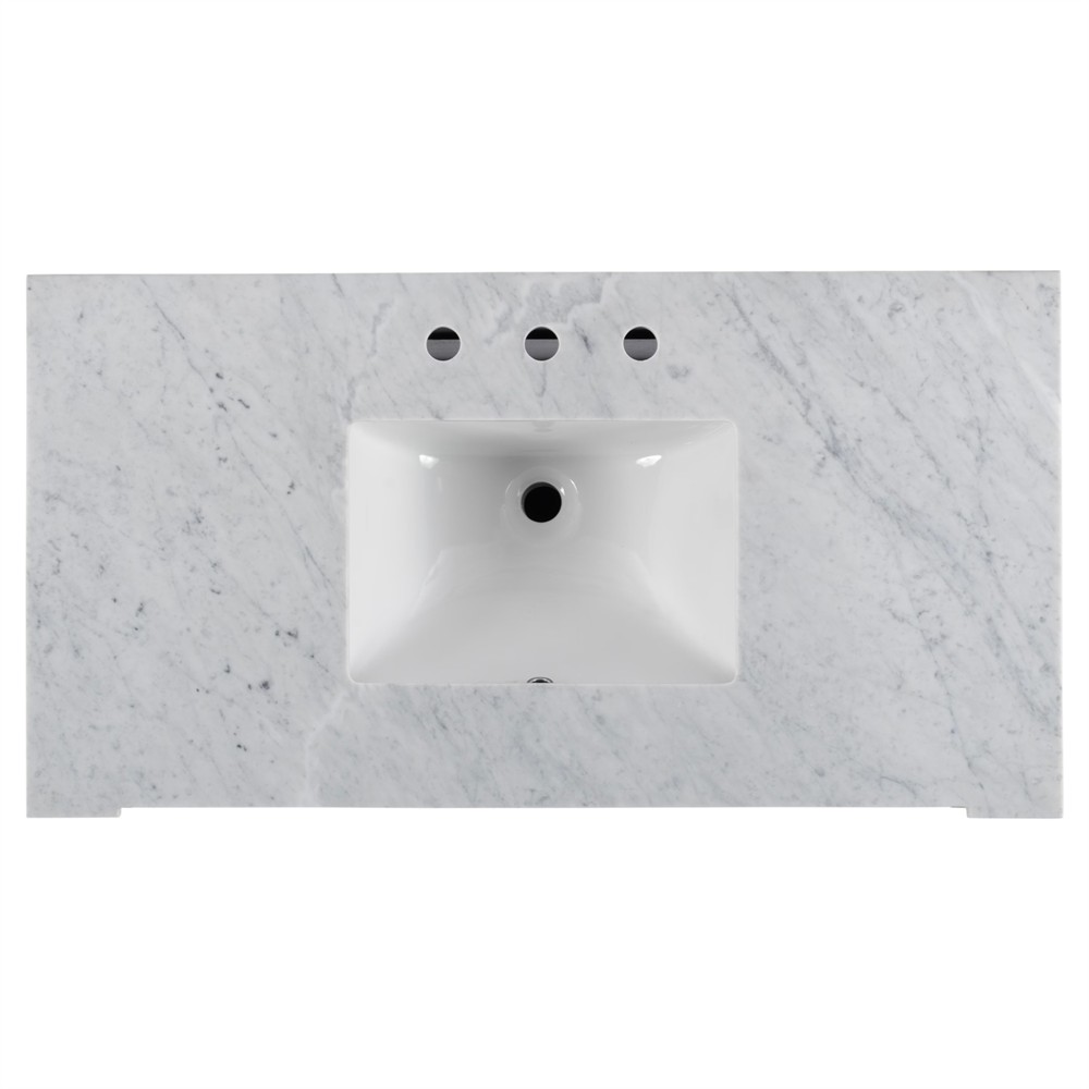 Cynthia Modern Classic Carrara Marble Bleached Oak Wide Vanity Sink - 48"