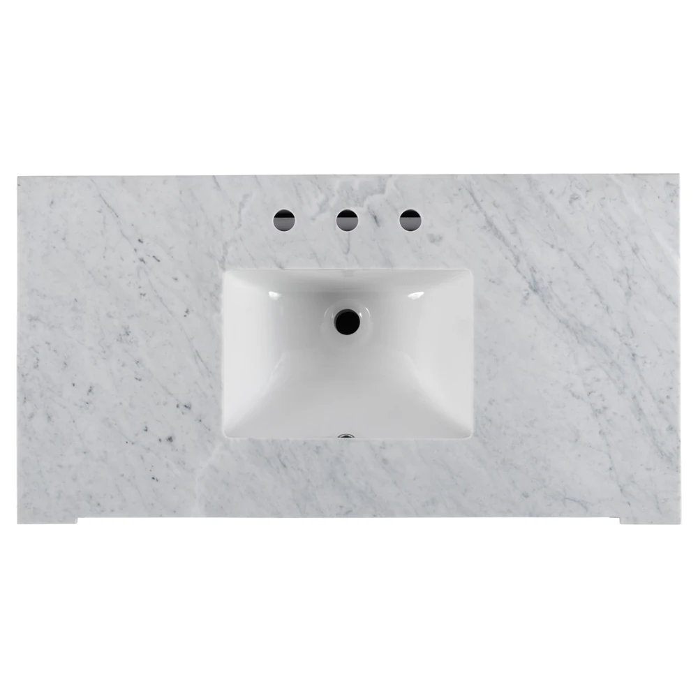 Gareth French Country Carrara Marble Whitewashed Wood Vanity Sink - 36"
