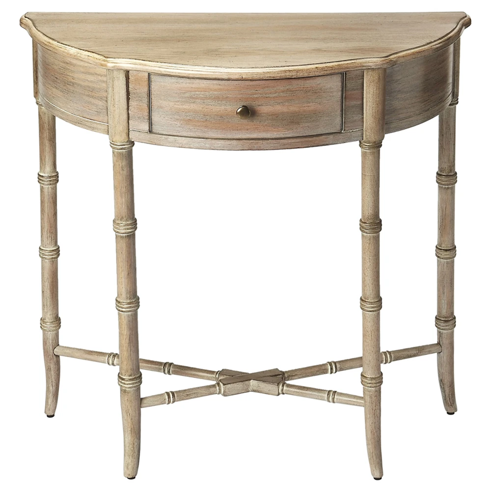 • Blackwelder French Country Brown Wood Demilune Console Table|Kathy Kuo Home