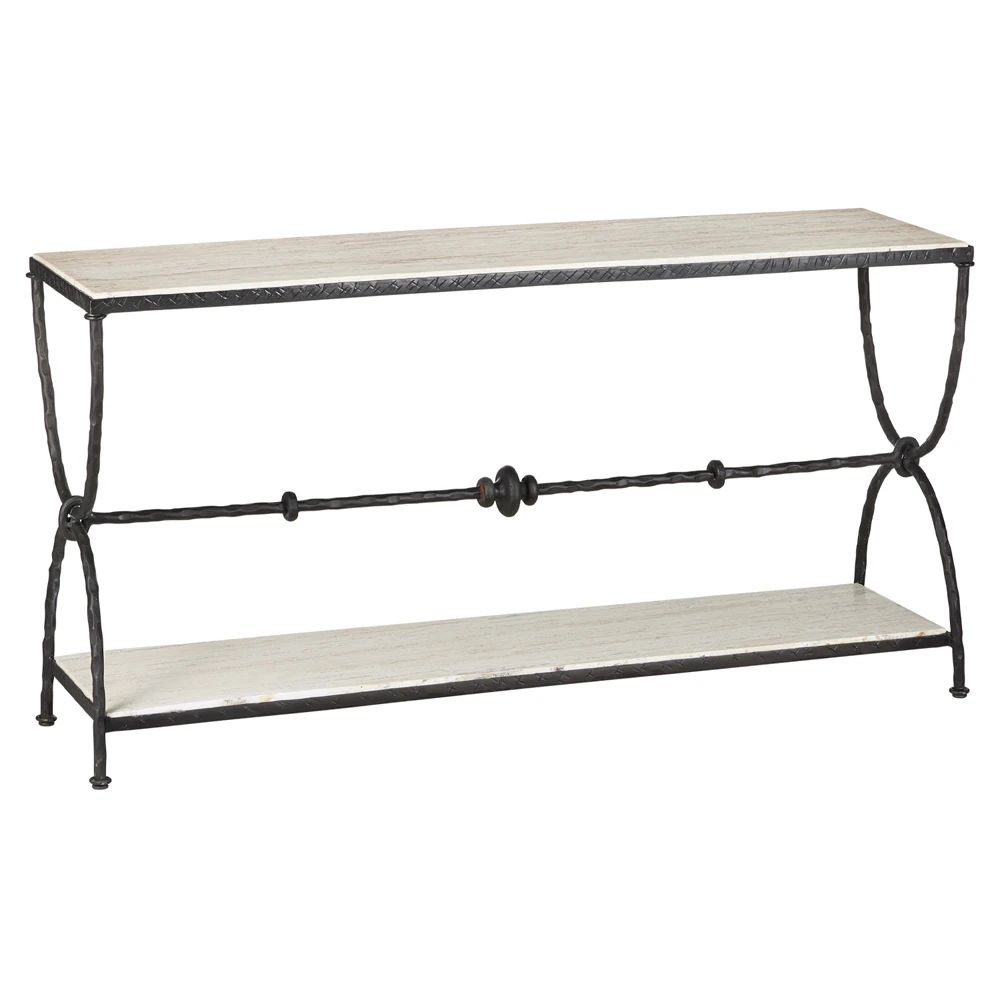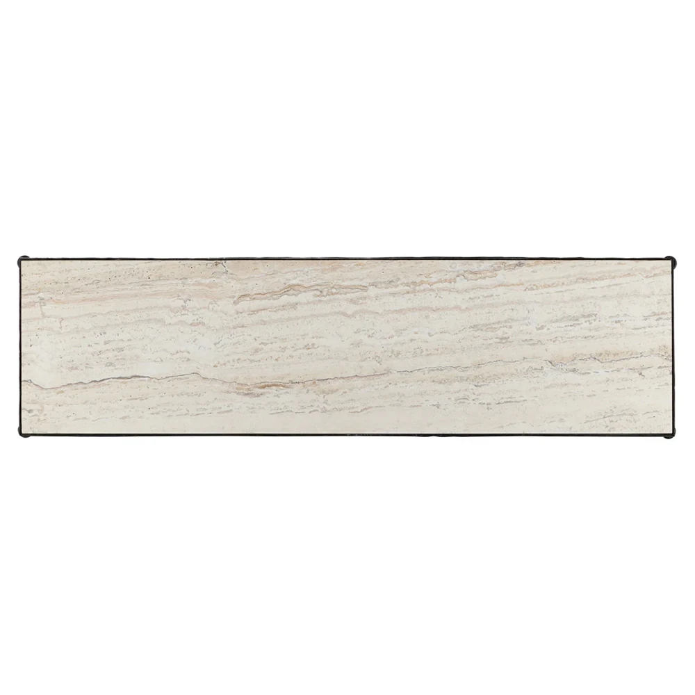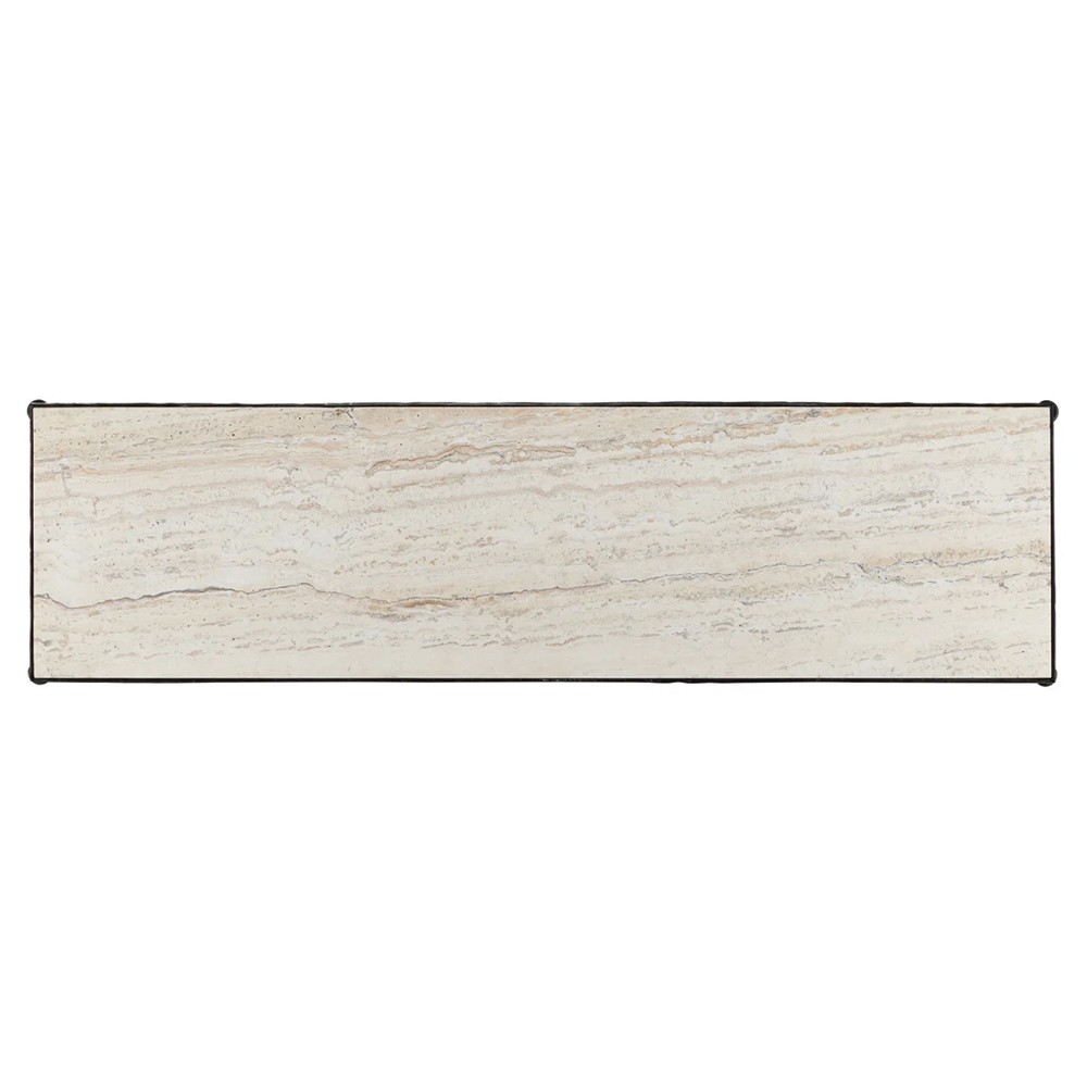 Arlene Updated Traditional White Travertine Bronze Iron Rectangular Console Table