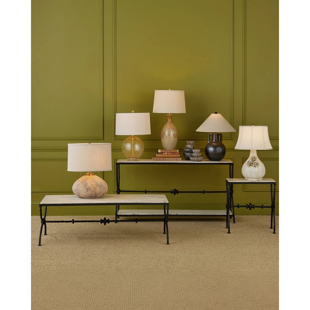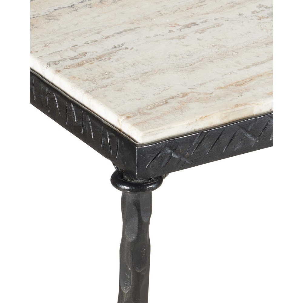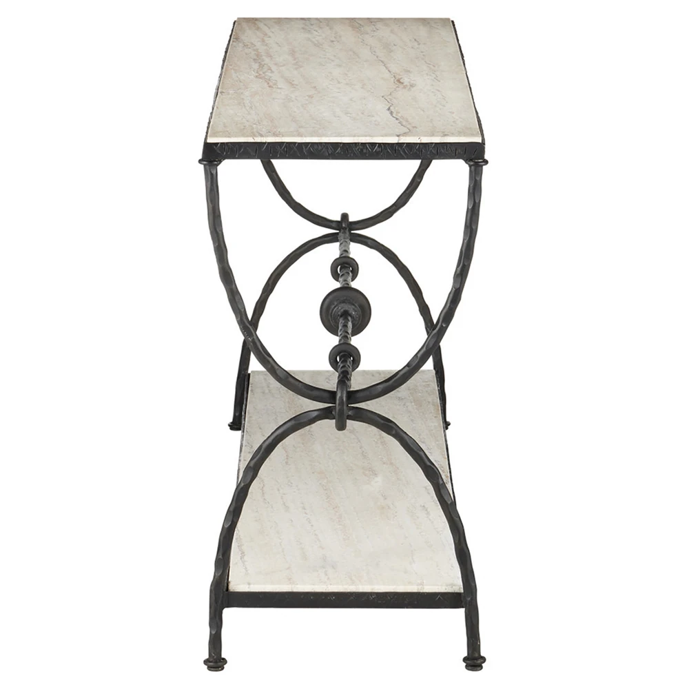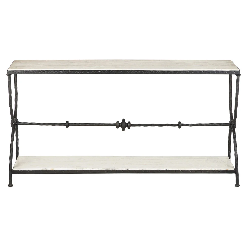 Arlene Updated Traditional White Travertine Bronze Iron Rectangular Console Table