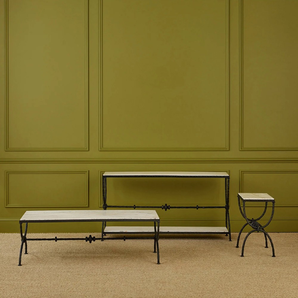 • Myla Industrial Loft White Marble Top Brown Iron Frame Console Table|Kathy Kuo Home