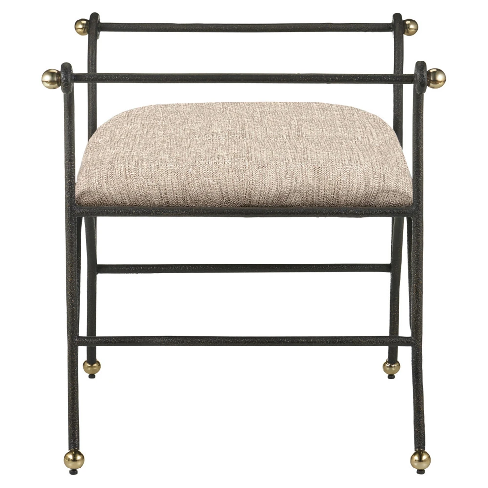 • Jane Updated Traditional Altair Mushroom Bronze Iron Rectangular Stool|Kathy Kuo Home