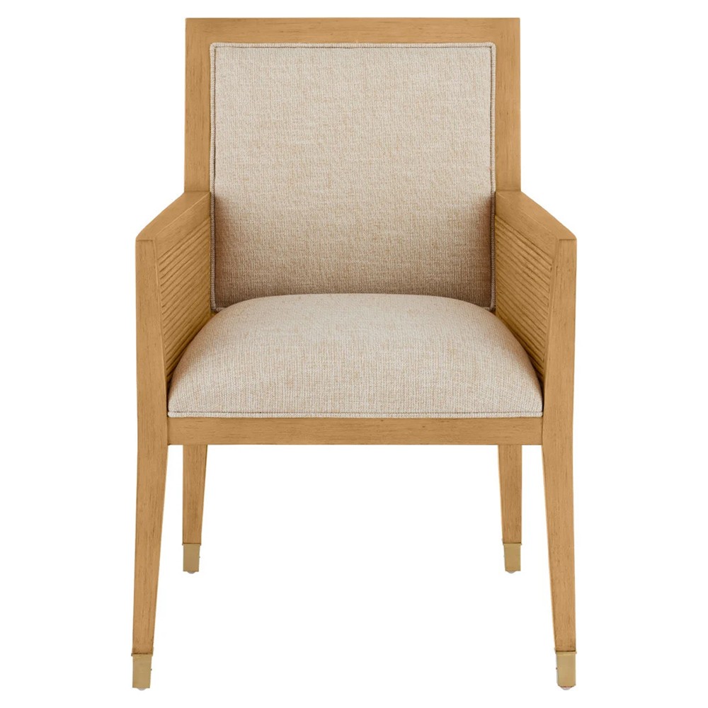 • Callista Modern Classic Off White Performance Oak Dining Arm Chair|Kathy Kuo Home