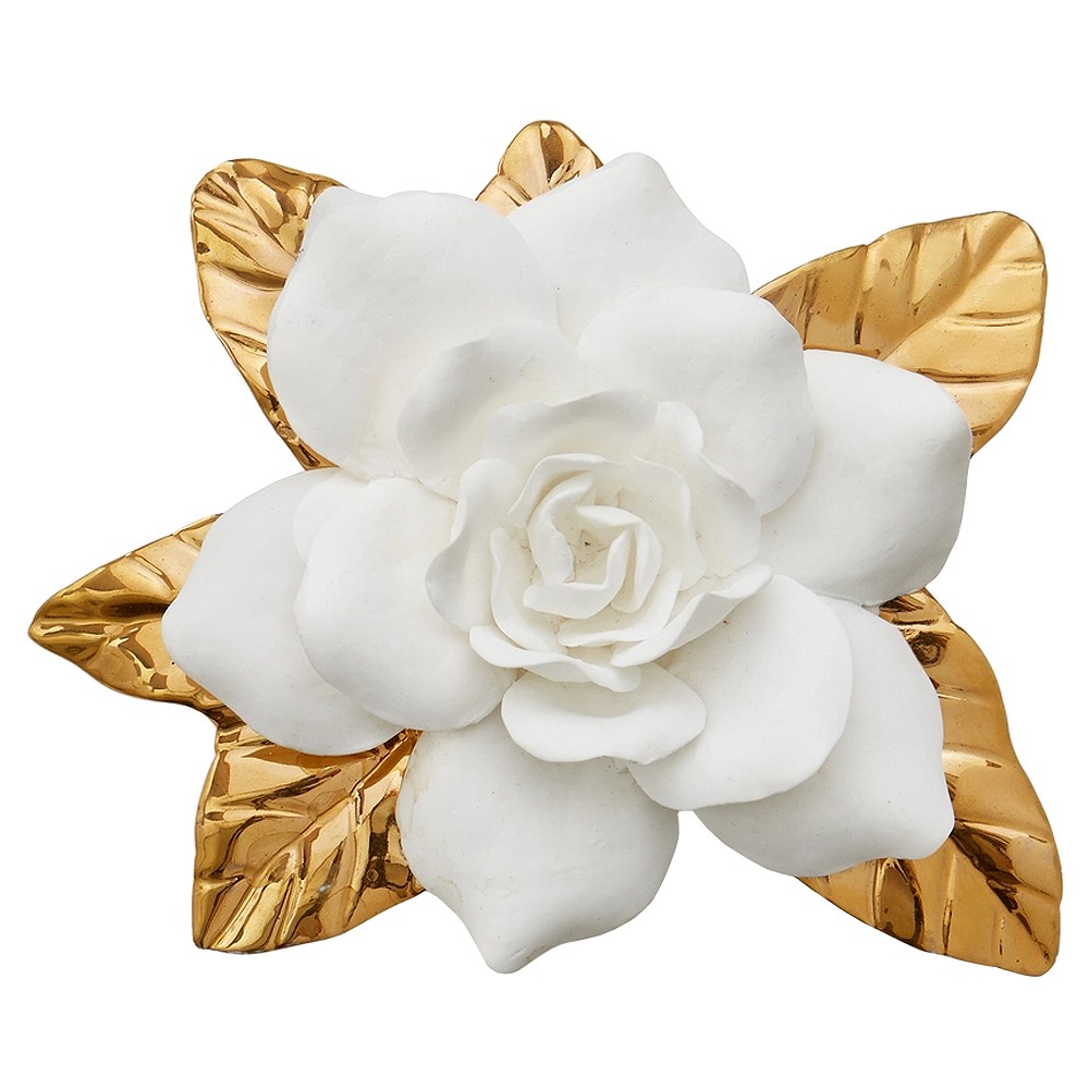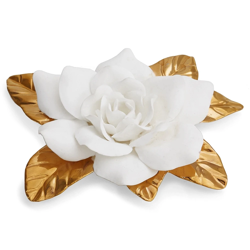 AERIN French Country Porcelain Gilded Gardenia White Floral Sculpture