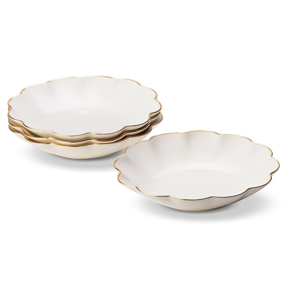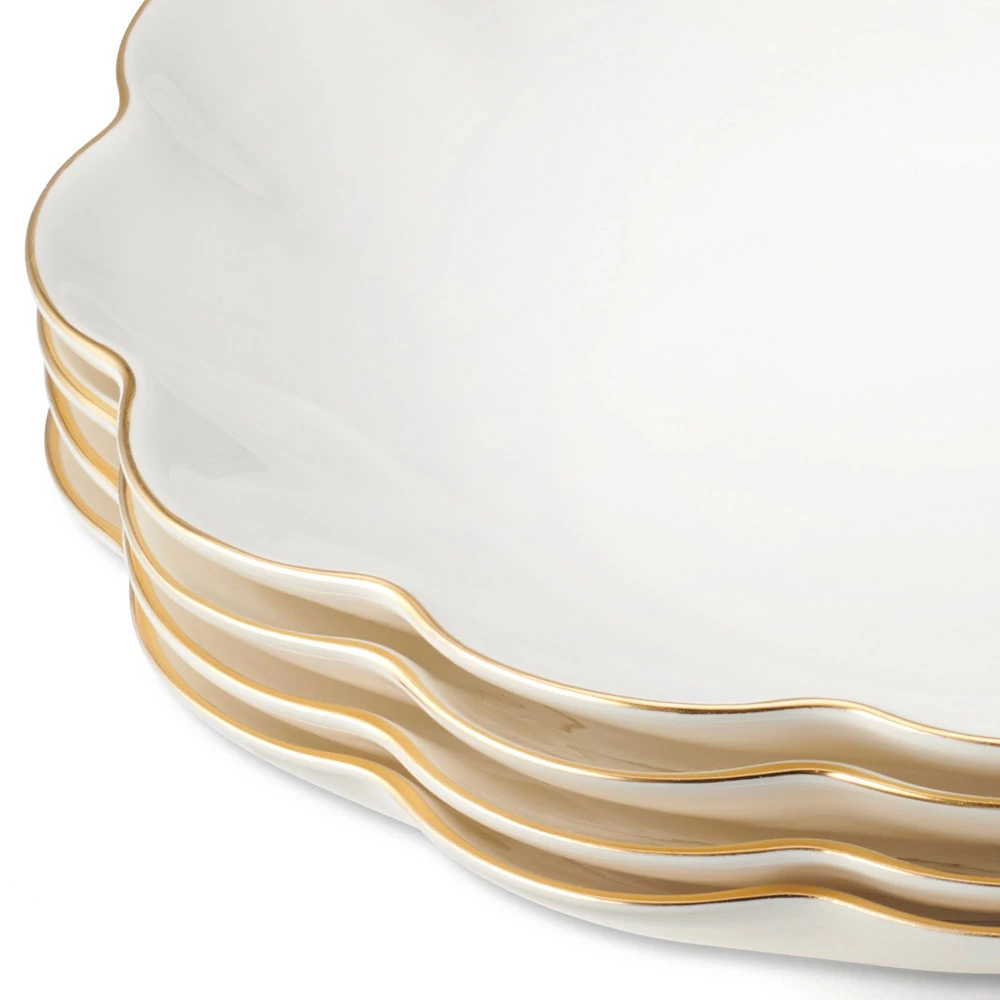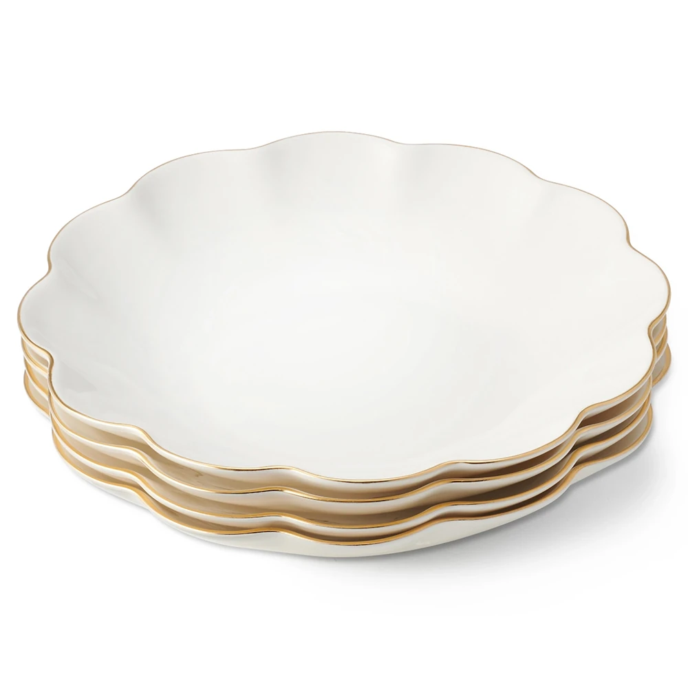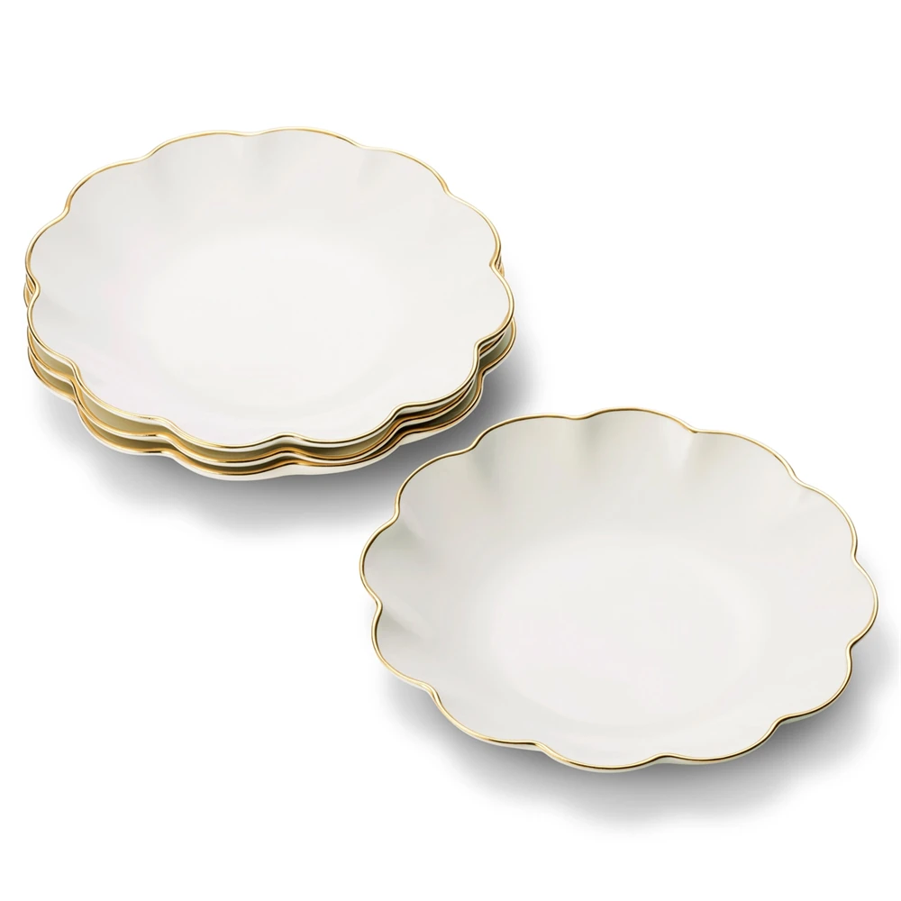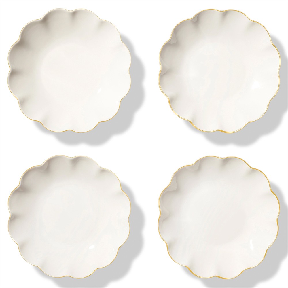 AERIN Coastal Beach White Bone China Scalloped Appetizer Plate - Set of 4