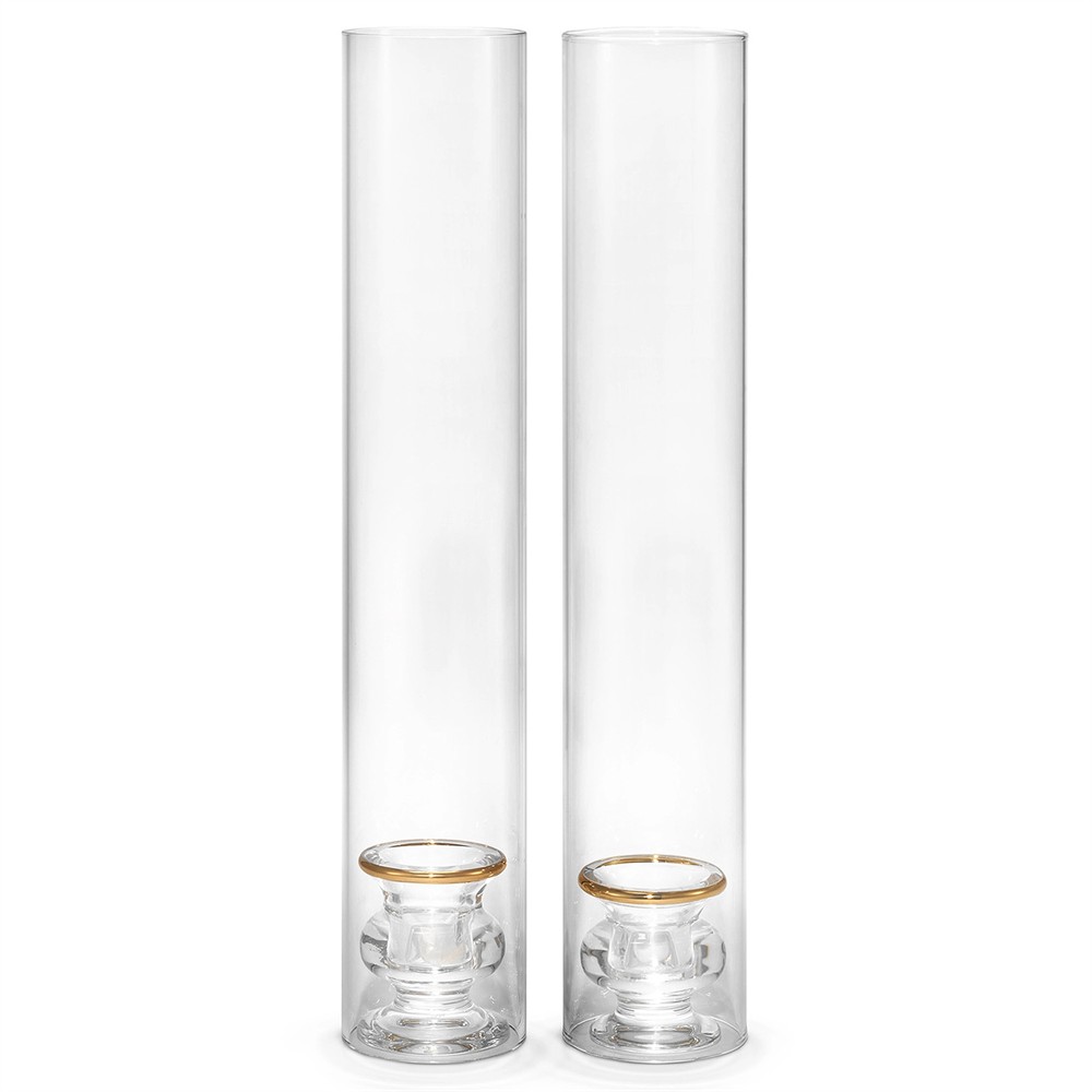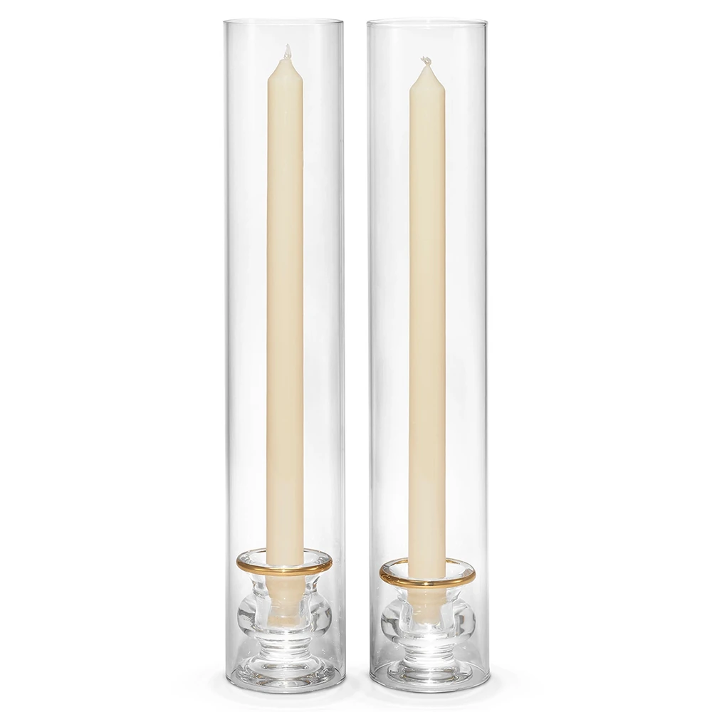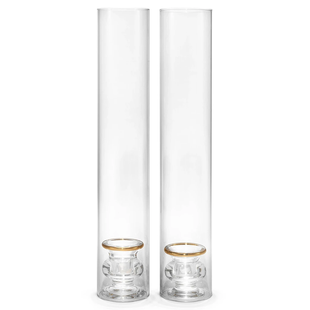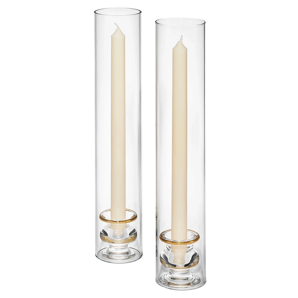 AERIN Sancia Traditional Gold Rim Glass Taper Candleholder with Sleeve - Set of 2