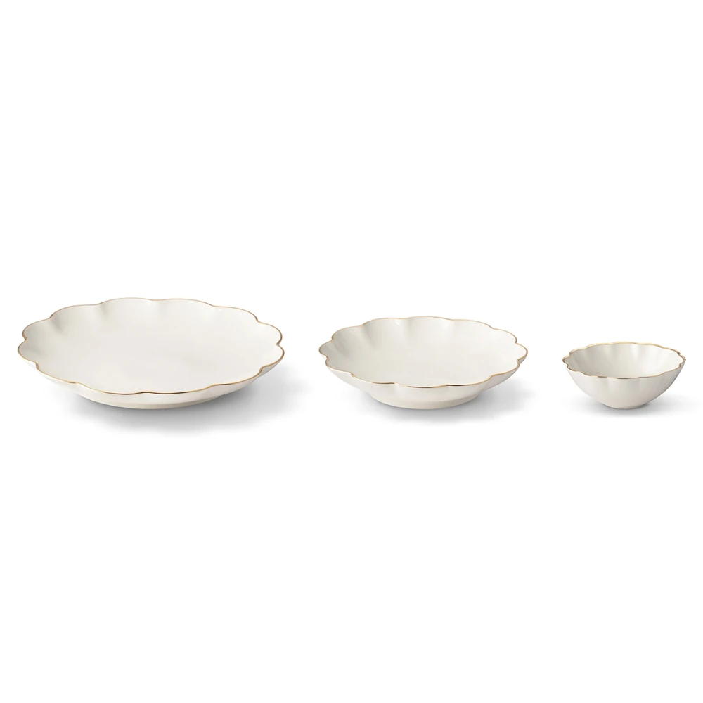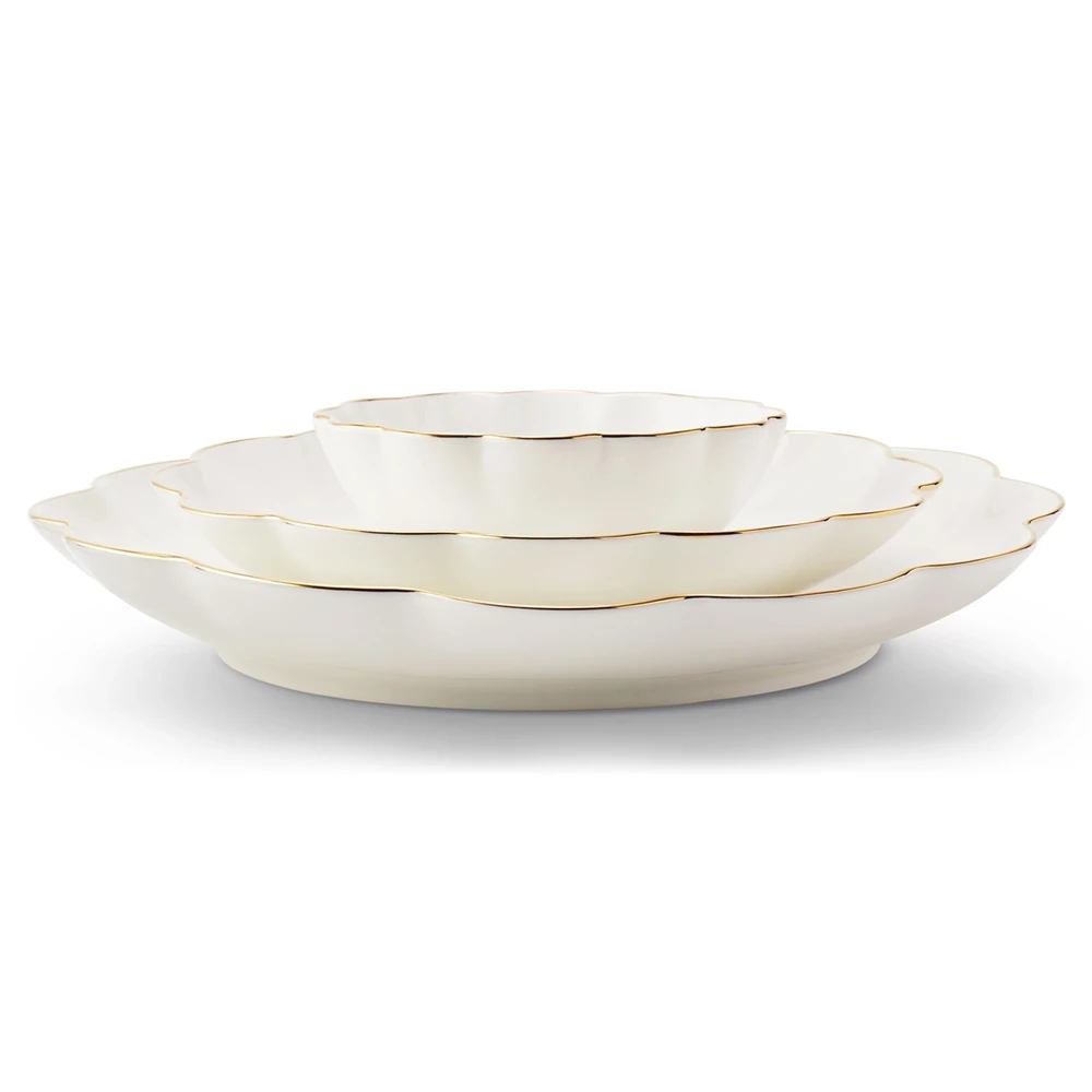 AERIN Coastal Beach White Ceramic Scalloped Nesting Serving Dish - Set of 3
