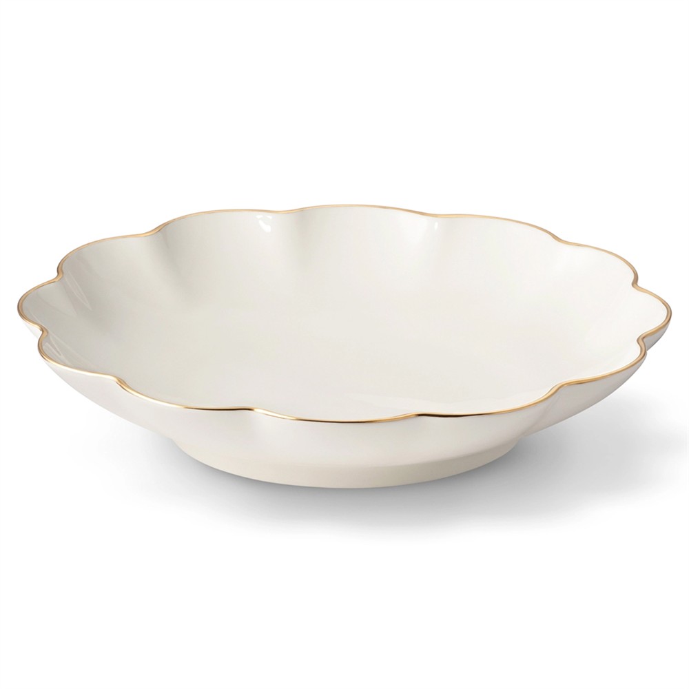 • Perlemor Coastal Beach Beige Porcelain Serving Bowl|Kathy Kuo Home