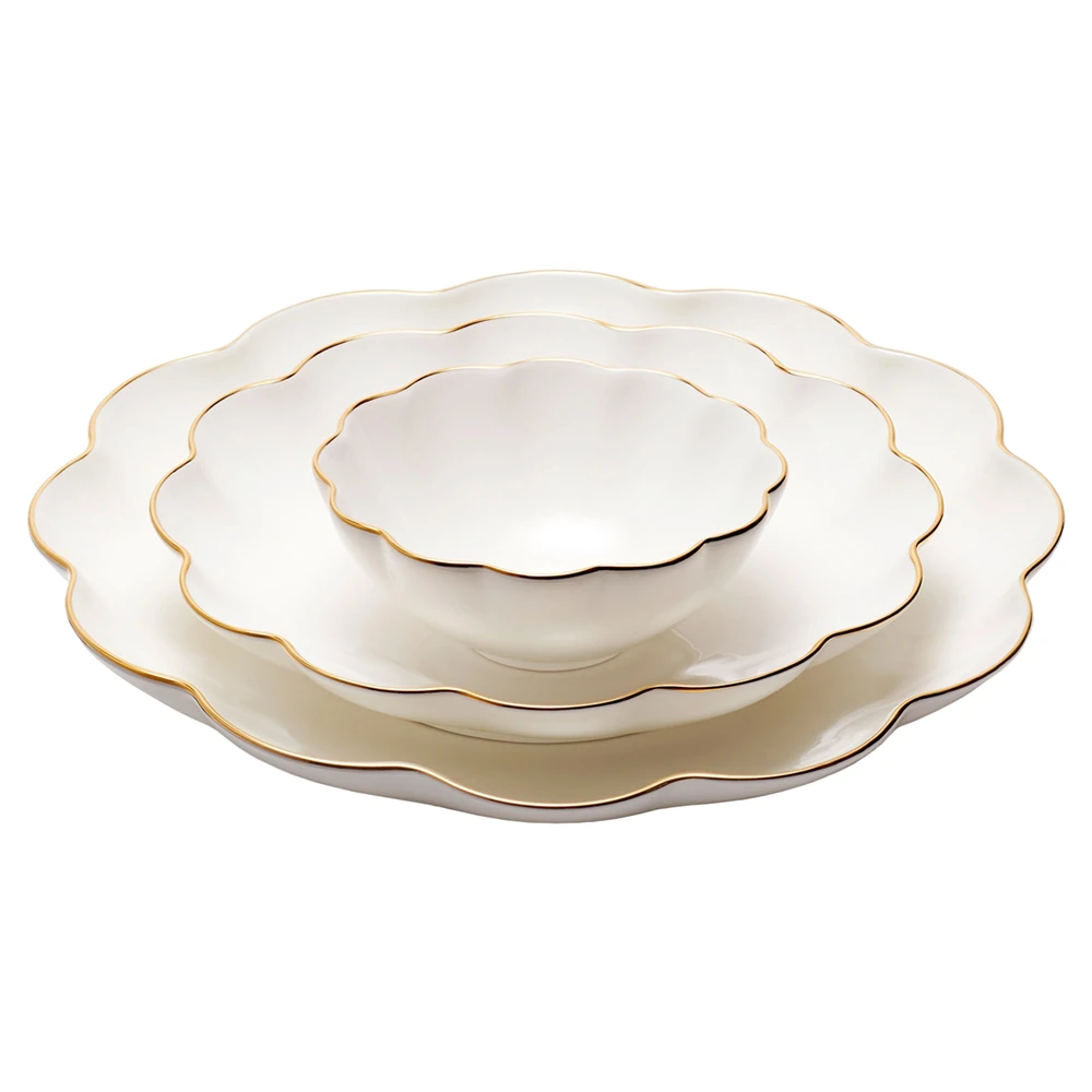 • AERIN Coastal Beach White Bone China Scalloped Appetizer Plate - Set of 4|Kathy Kuo Home