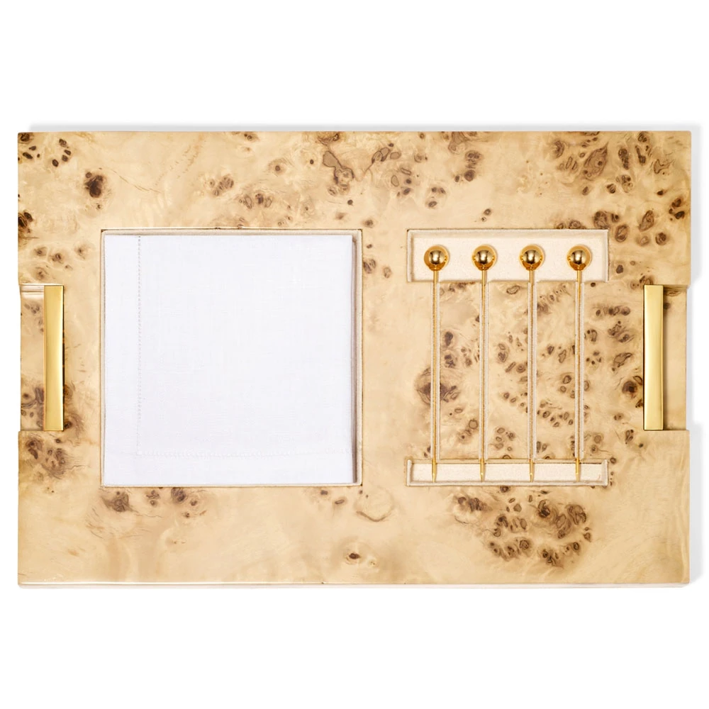 AERIN Updated Traditional Cream Shagreen Burl Wood 5 in 1 Game Set