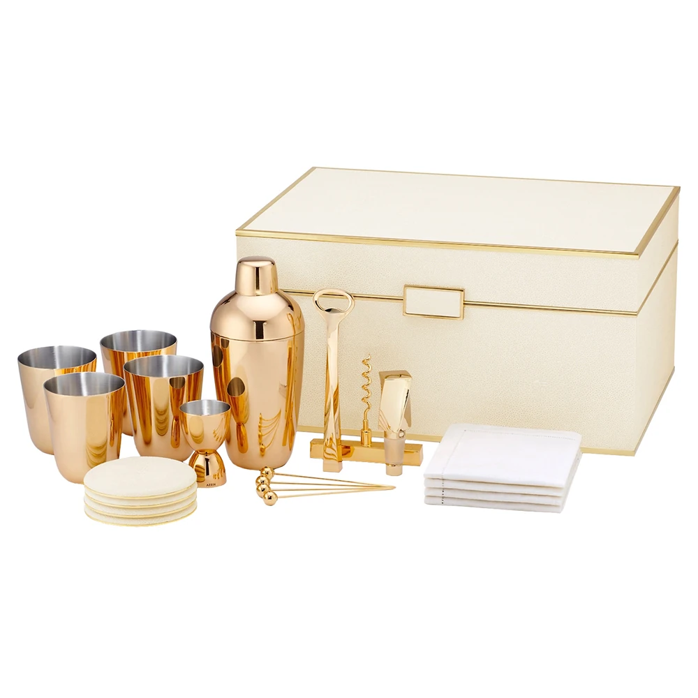 AERIN Updated Traditional Cream Embossed Shagreen Bar Tool Set