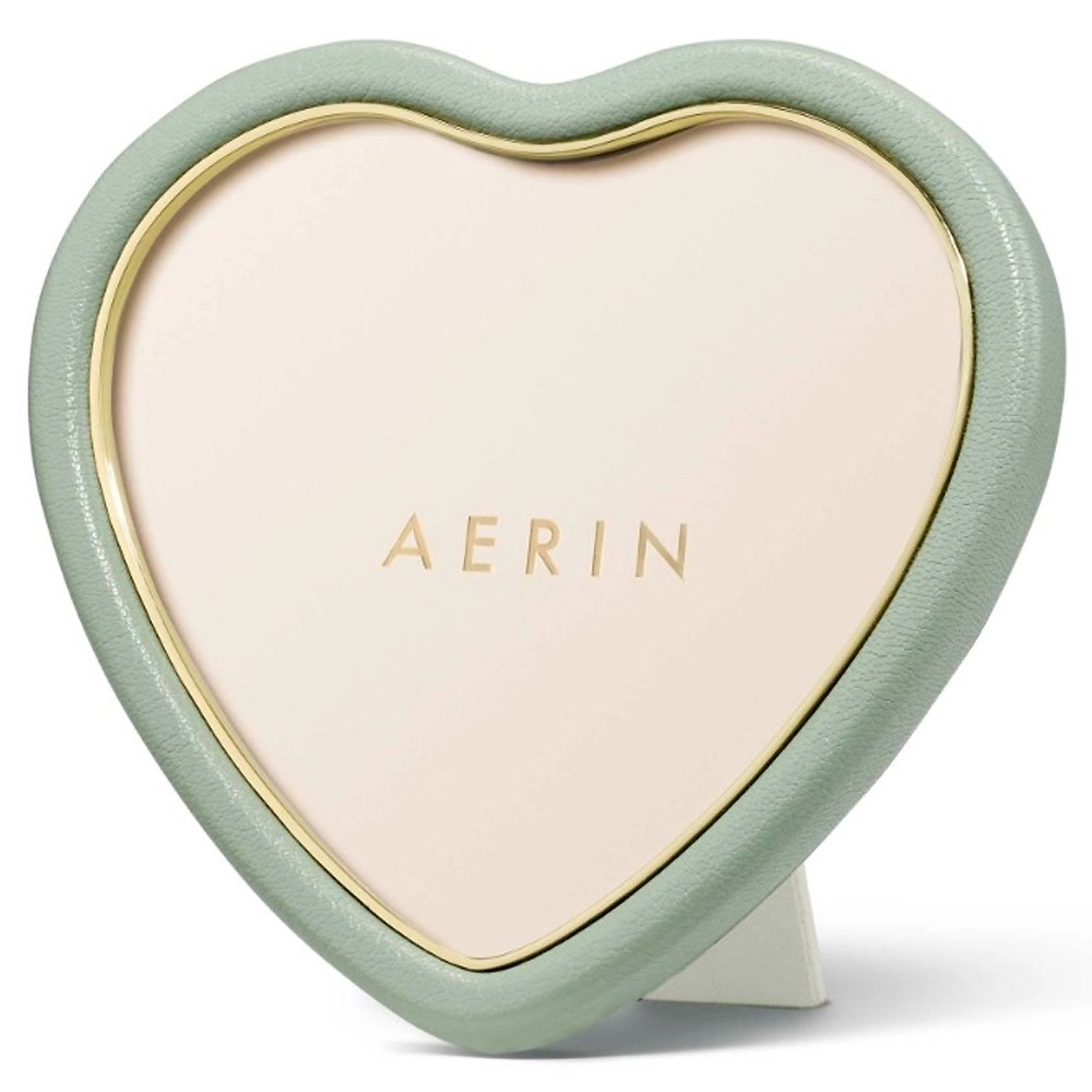 AERIN Piero Modern Classic Eucalyptus Leather Heart Photo Frame - 5x5