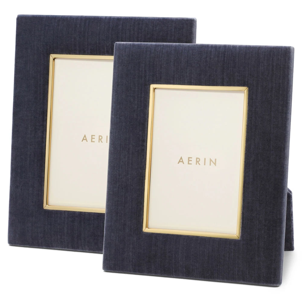 AERIN Valentina Updated Traditional Dusk Blue Velvet Photo Frame - 4x6
