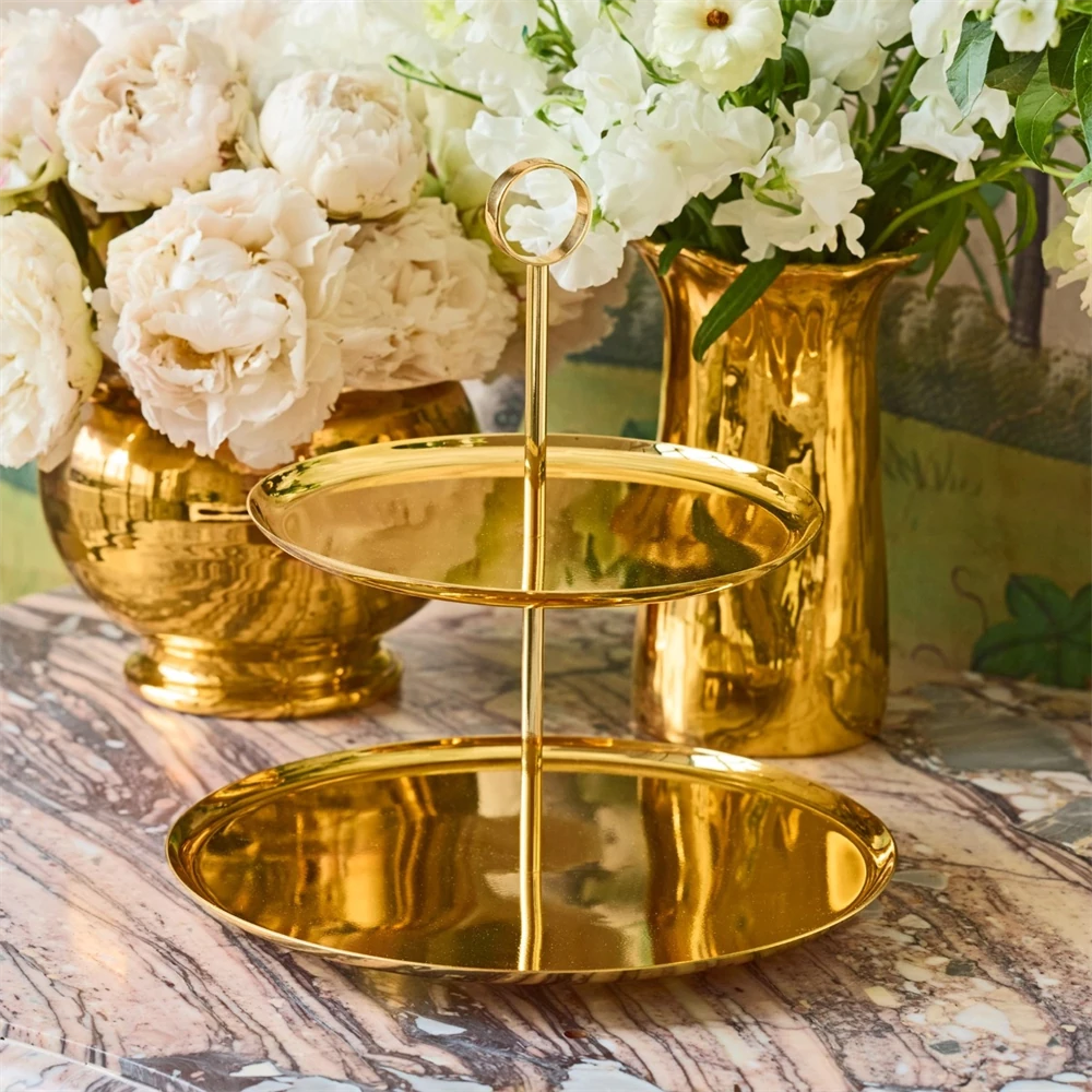 AERIN Sintra Updated Traditional Gold Brass 2 Tier Serving Stand