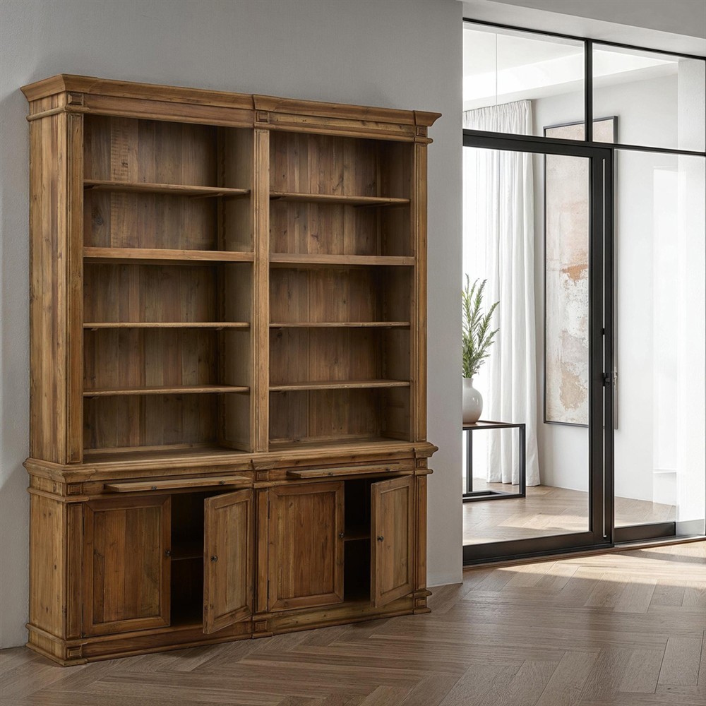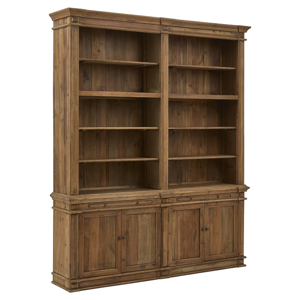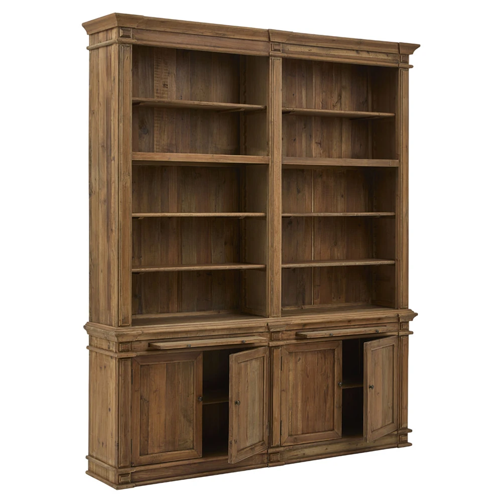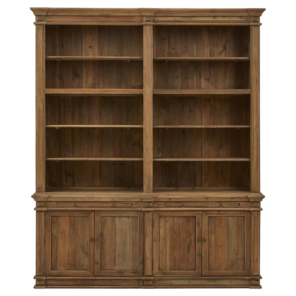 Arwen Updated Traditional Brown Reclaimed Pine Wood Double Bookcase