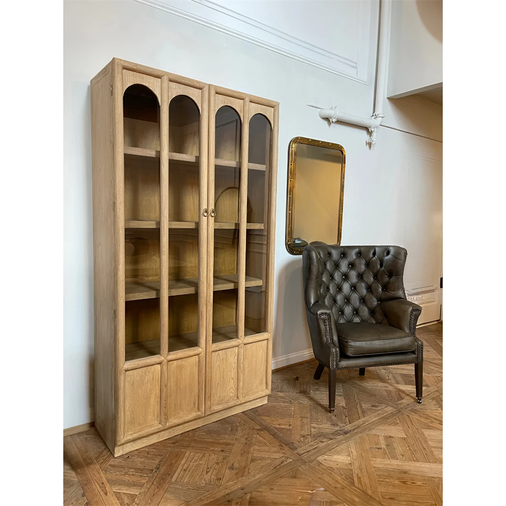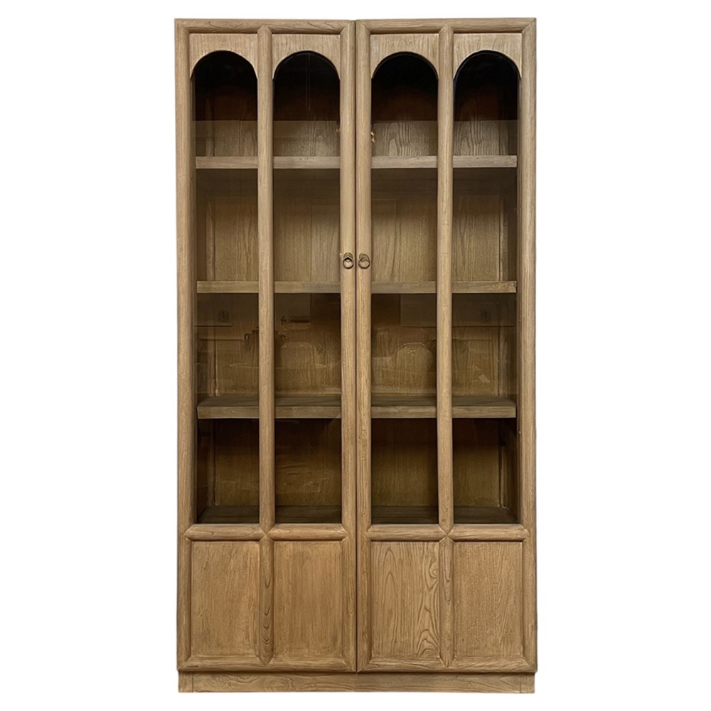 Brienne Modern Classic Brown Reclaimed Wood Arched Display Cabinet