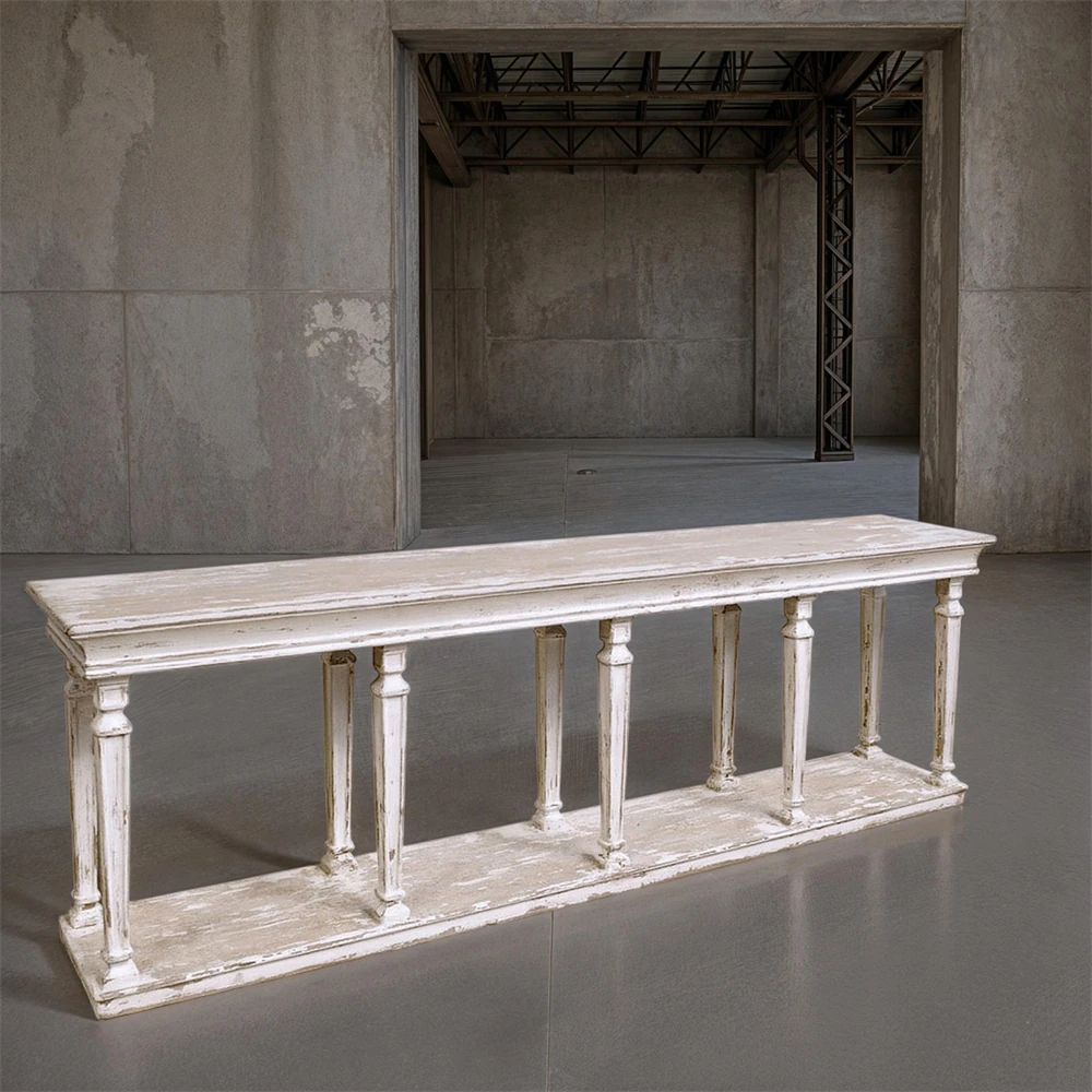 Cambria French Country Antique White Reclaimed Pine Rectangular Console Table