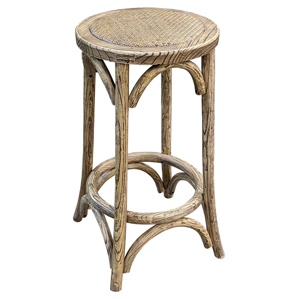 • Clio French Country Brown Wood Woven Counter Stool|Kathy Kuo Home