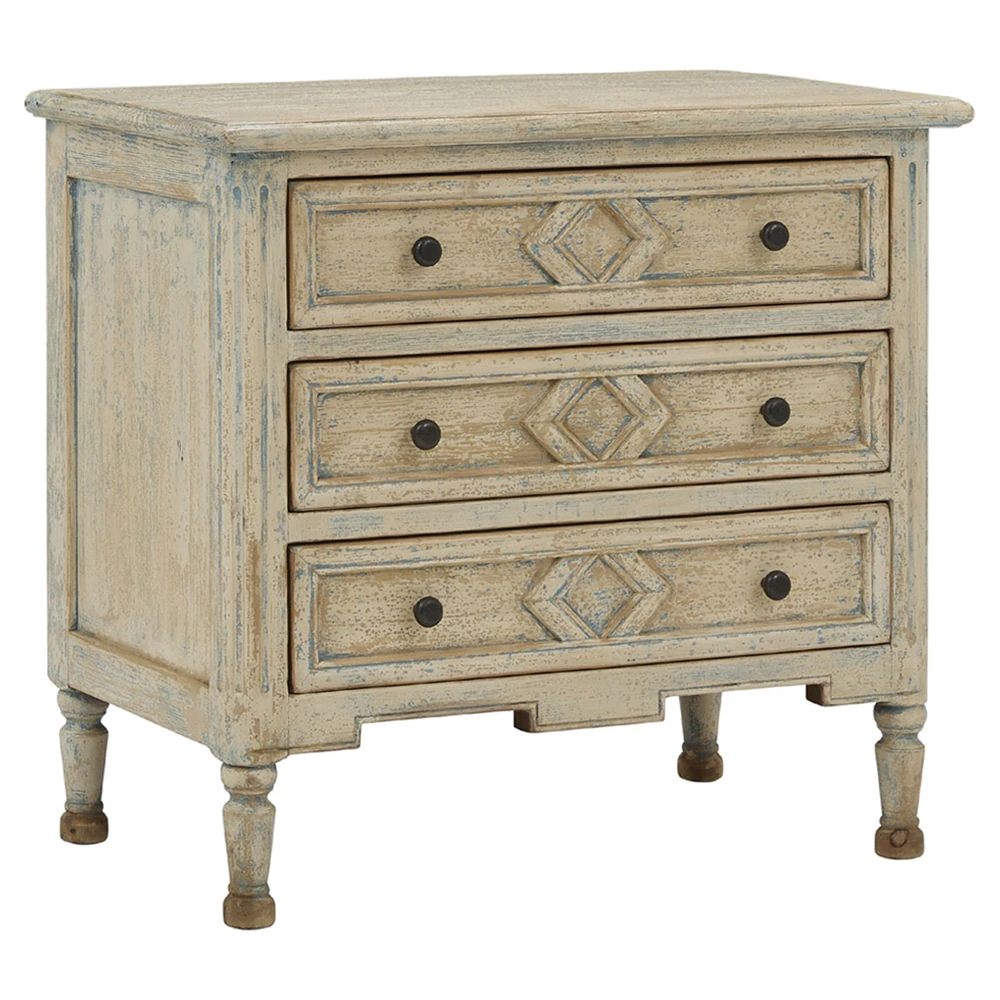 • Vance French Country Brown Oak Wood 3 Drawer Bachelor Chest|Kathy Kuo Home