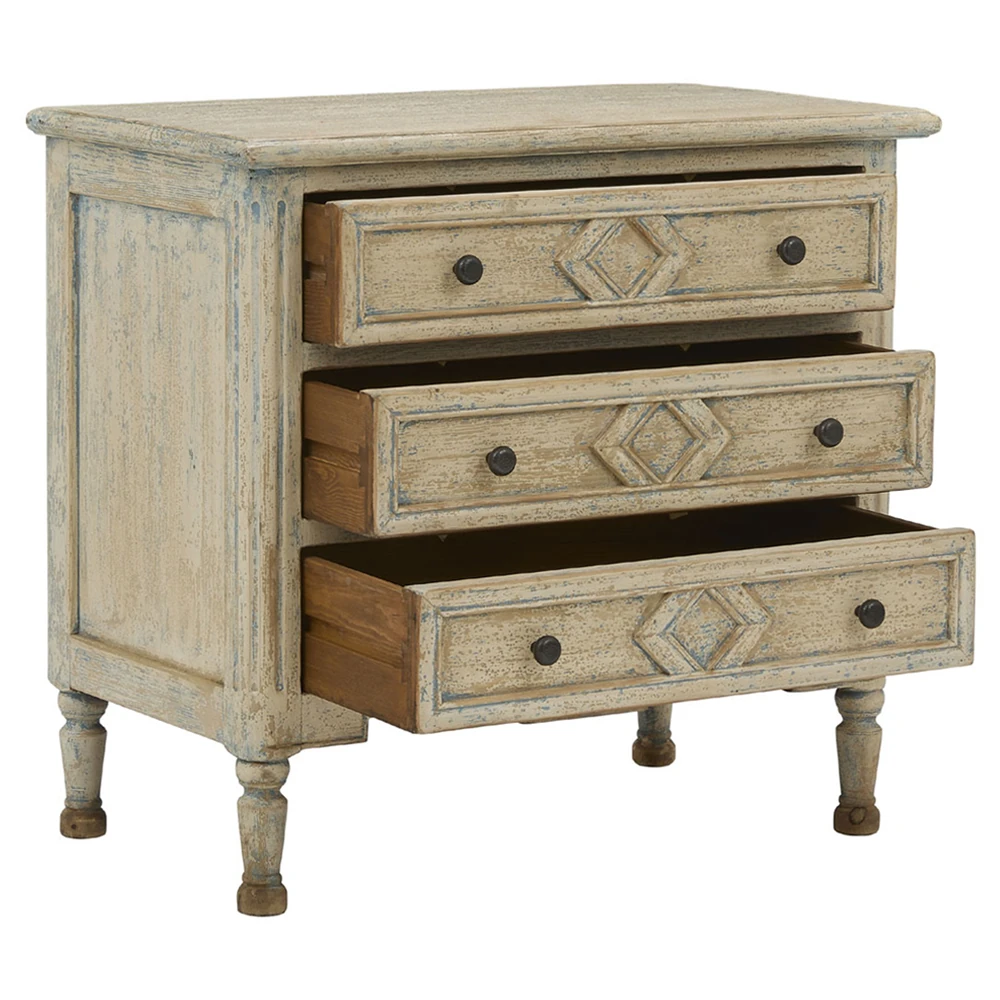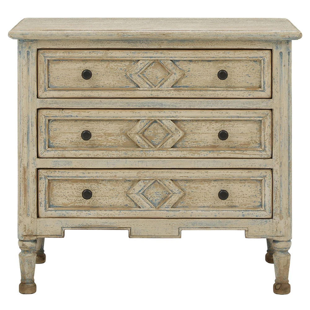• Maristelle French Country Distressed Blue Reclaimed Pine Bachelor Chest|Kathy Kuo Home