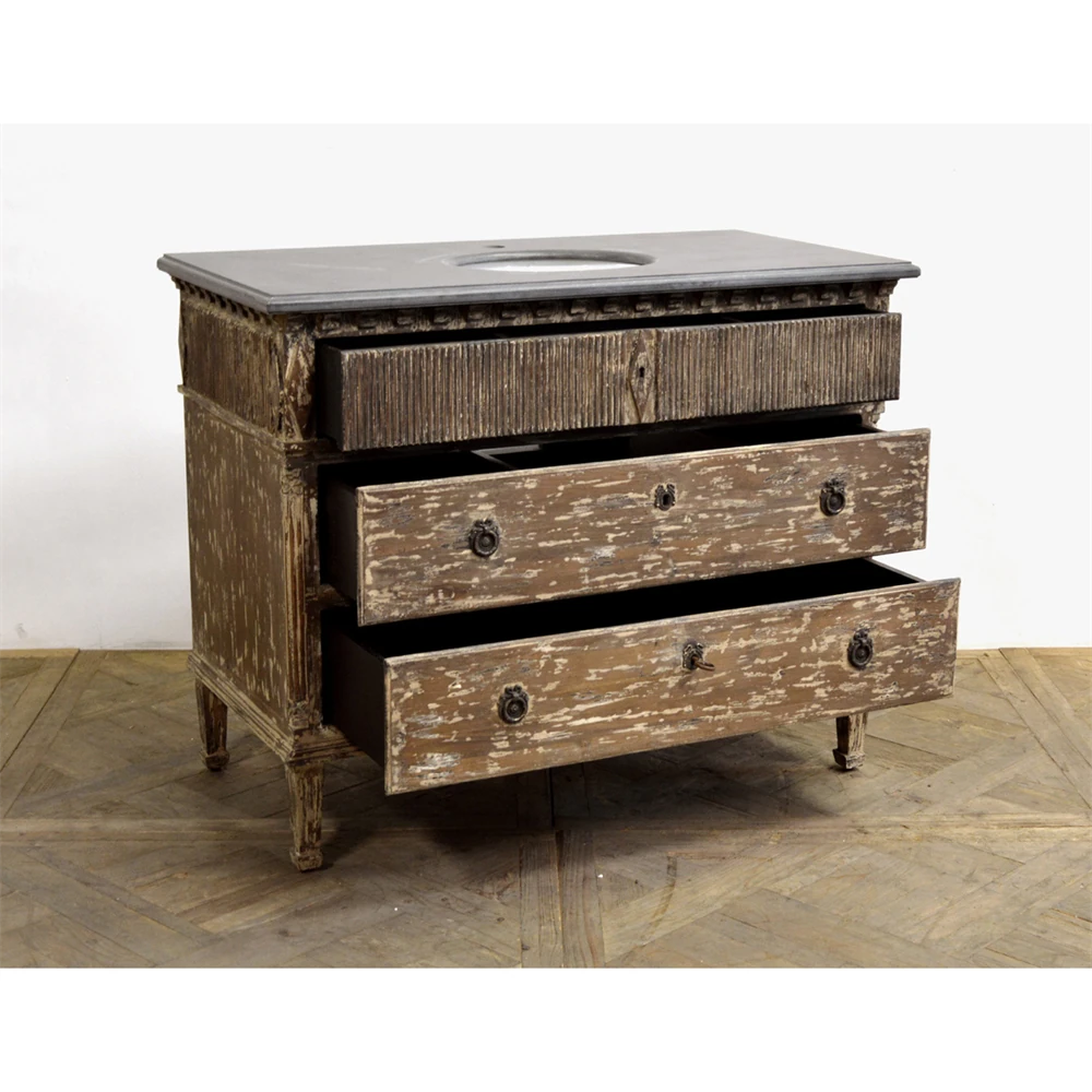 Johan French Country Blue Stone Antique White Oak Bath Vanity Sink - 50"