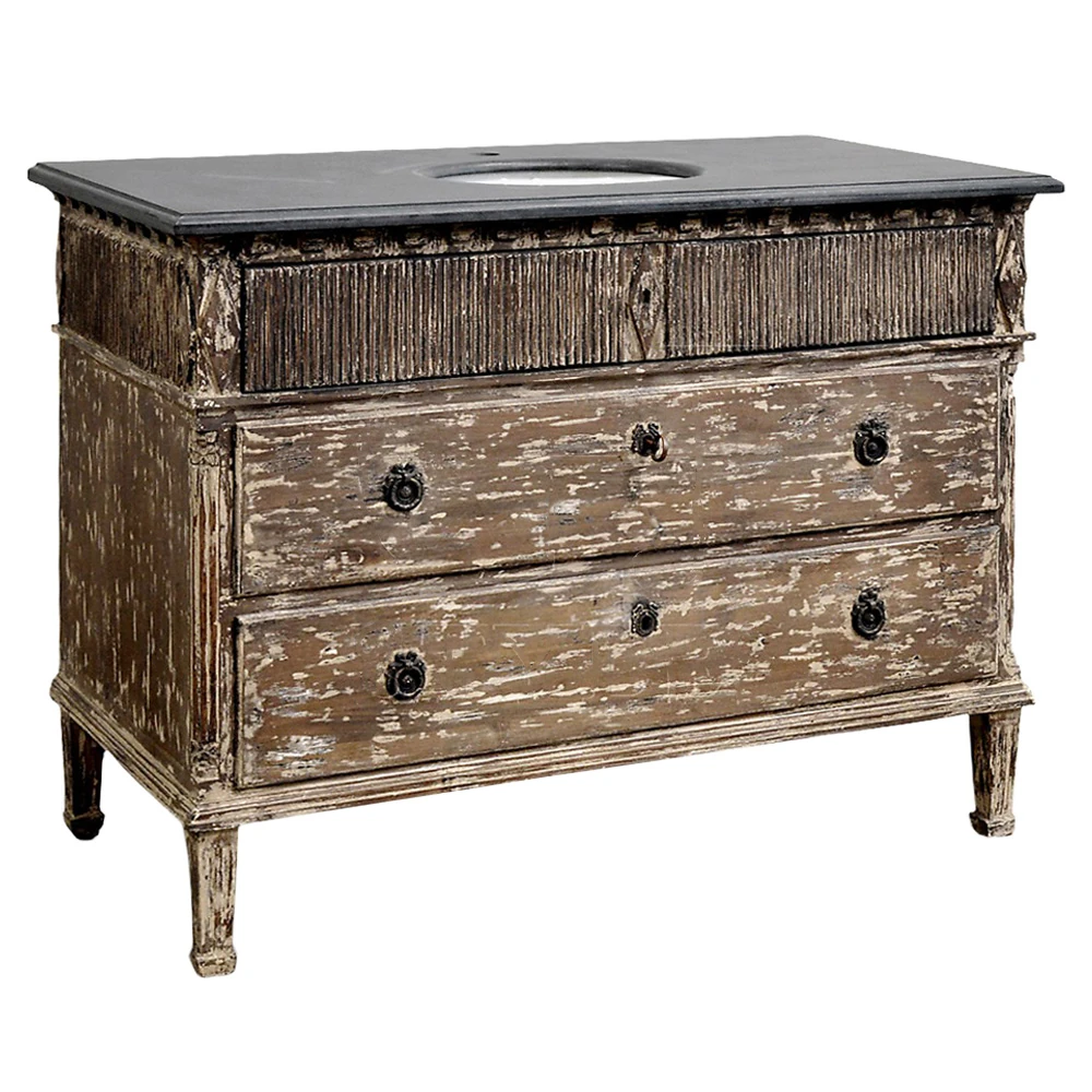 • Johan French Country Blue Stone Antique White Oak Bath Vanity Sink - 50"|Kathy Kuo Home