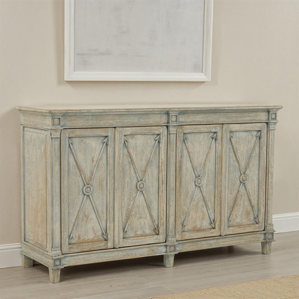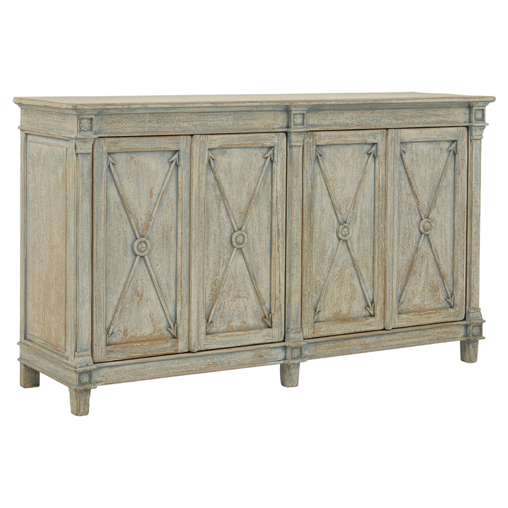 • Vanya Rustic Lodge Antique Light Blue Pine Wood Sideboard|Kathy Kuo Home