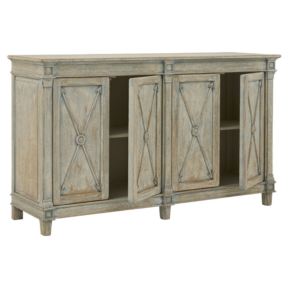 • Cerise Updated Traditional Blue Oak Wood Sideboard|Kathy Kuo Home