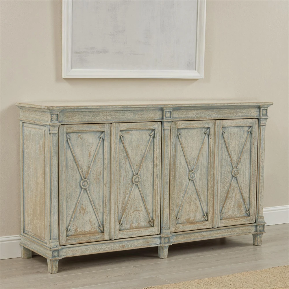 Jarren French Country Distressed Light Blue Reclaimed Pine Wood Sideboard