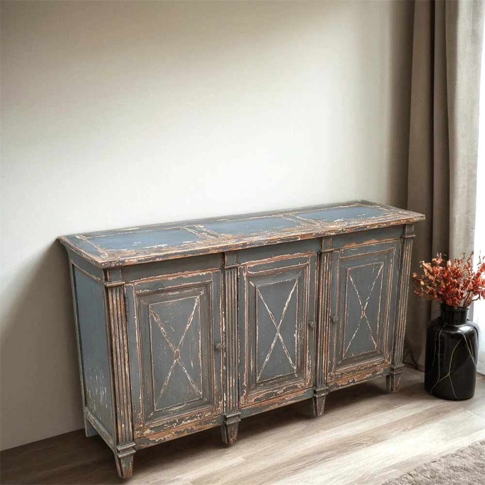 Jarren French Country Distressed Light Blue Reclaimed Pine Wood Sideboard