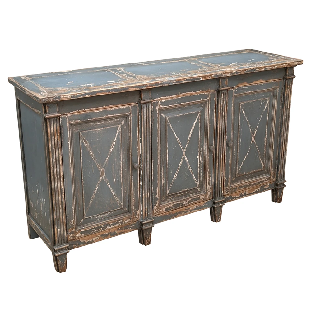 • Jarren French Country Distressed Light Blue Reclaimed Pine Wood Sideboard|Kathy Kuo Home