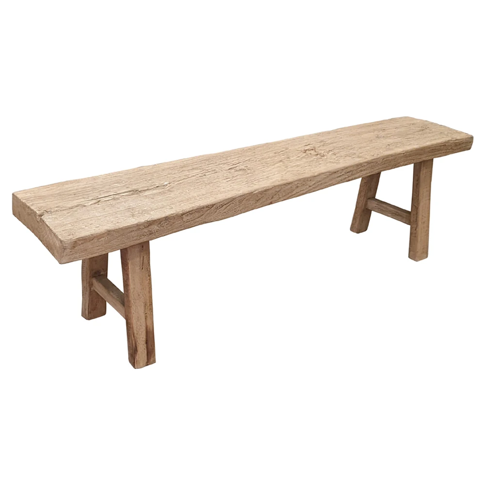 Zyra Coastal Beach Bleached Brown Reclaimed Elm Wood Entryway Bench